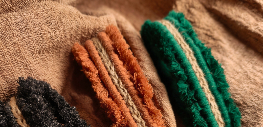 使用不含化學纖維的純棉、麻、再生、再利用等線材為創作材料,