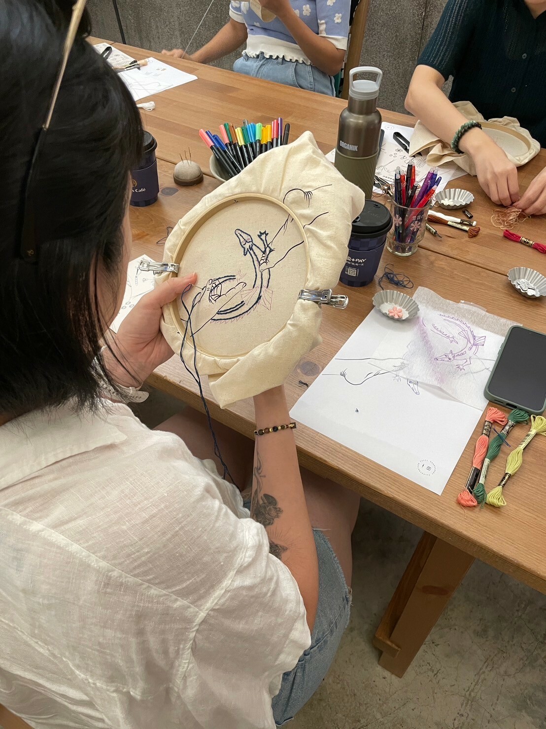 刺繡雖然看似精細複雜,但其實技法簡單,材料單純,初學者也可以輕鬆上手。主要使用的材料只有線與布,輕便好攜帶之外還可以隨處亂放(壞習慣),不用考慮時間不夠或是顏料會沾染的問題,在任何地方都可以進行創作,也可以隨時停下來再重新開始,除了需要時間與耐心外,儘管是初學者,作品的完成度都還是可以蠻完整的。