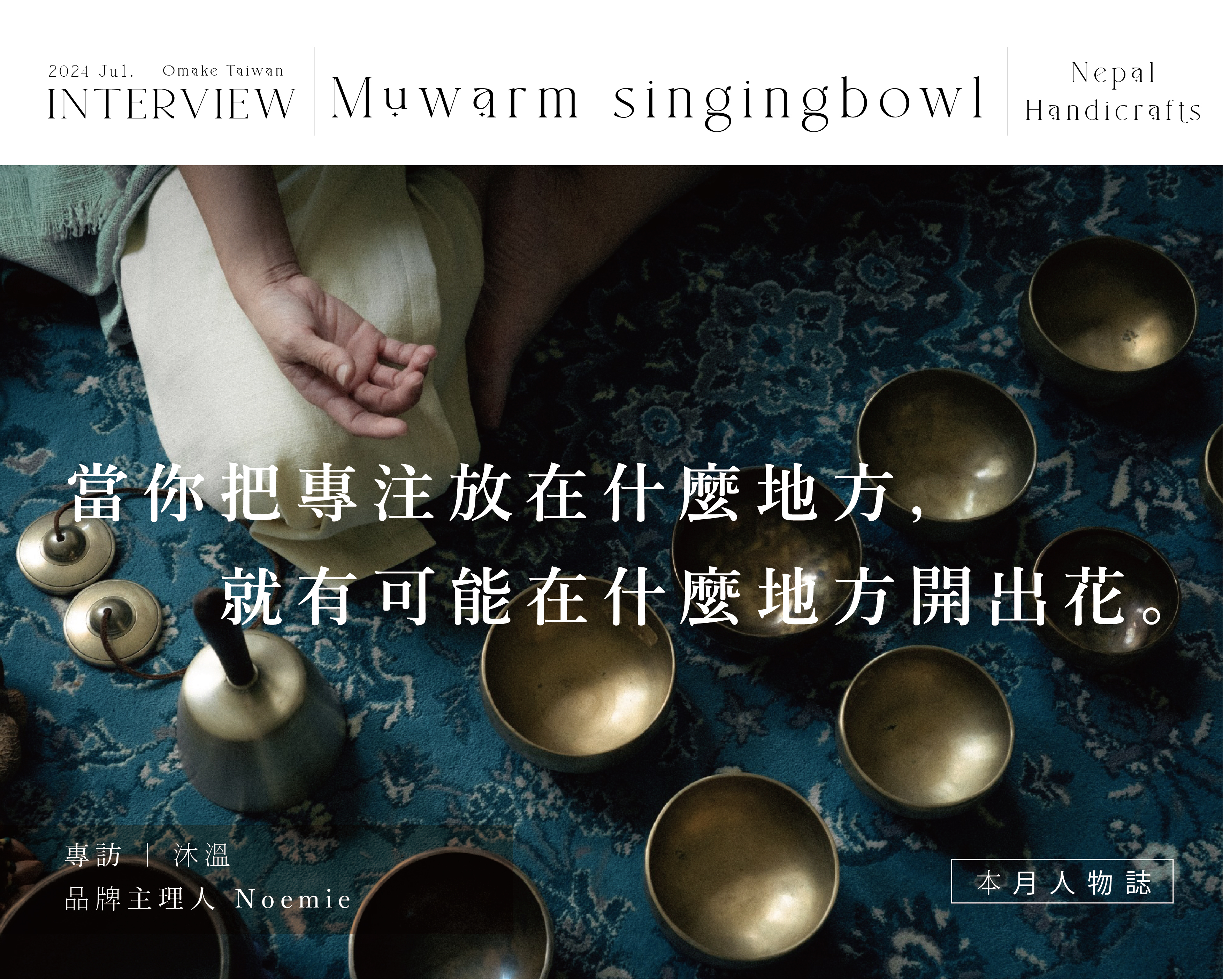 Noemie 是沐溫的負責人,沐溫這個名字有流動的水,有生命的木,在聲音的流動中,用能量的交流喚醒你我手心的溫度,期許能夠透過頌缽的共鳴,將心靈中的負能量洗滌,再把溫暖放入大家的心中:)