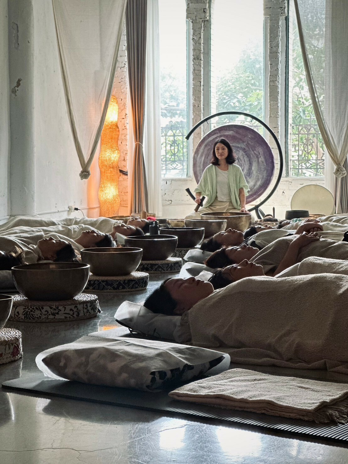如果你願意聽頌缽的聲音,發現自己的心靜下來了,其實就已經得到療癒了。這樣的療癒其實每個人都可以自己創造,參加過音療課的人也可以自己在家裡敲頌缽。可以把音療課想像成是去做spa,自己在家裡敲頌缽是日常保養,是對自己的心的保養。