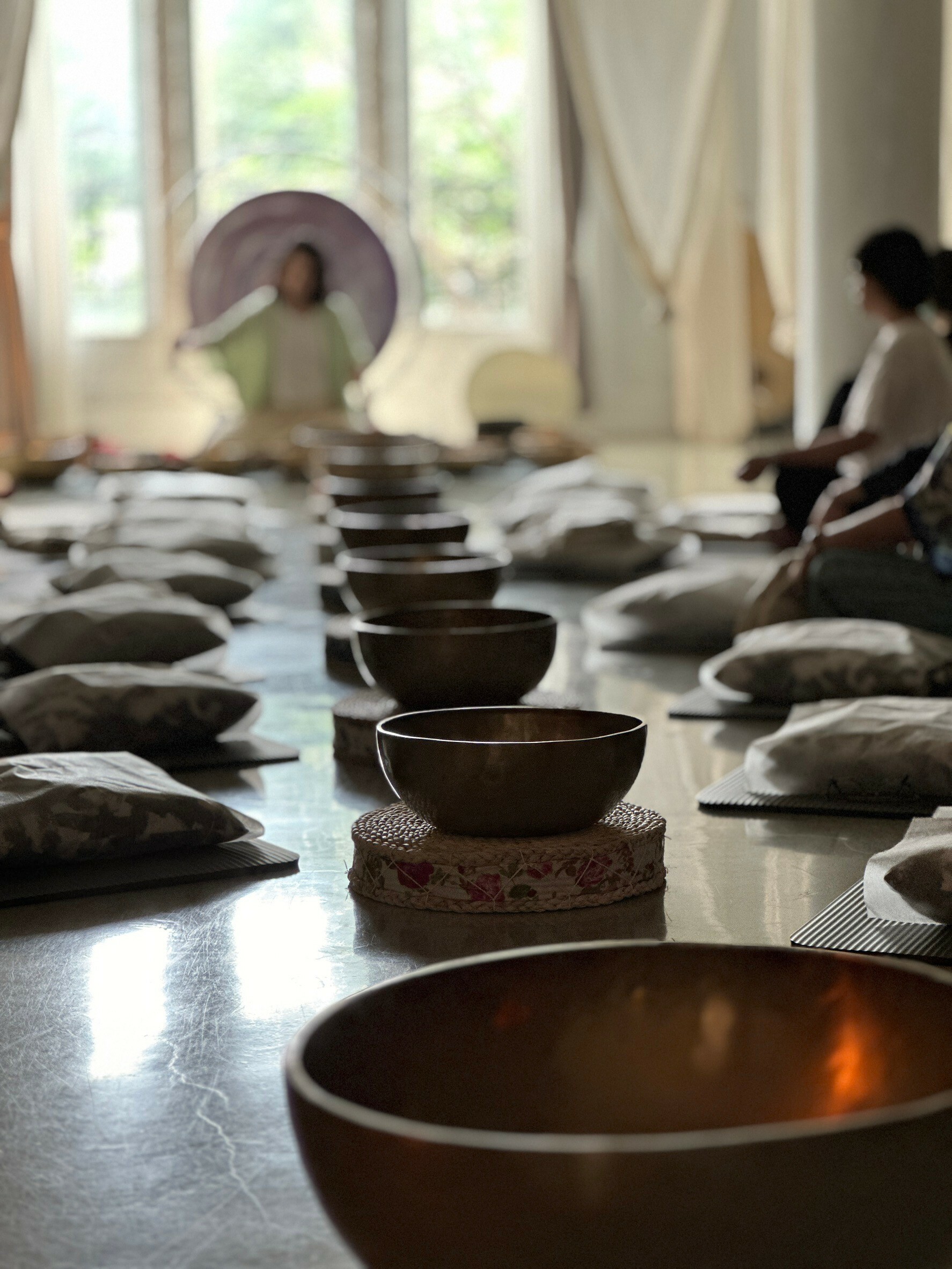 音療課是一段時間內的透過不同音調的頌缽與樂器進行的完整療癒,但如果是第一次來到沐溫想要認識頌缽,聽到了聲音的當下,療癒也許就發生了,因為你得到了一個專注,當你把專注放在什麼東西上面,就有可能在什麼地方開出花。