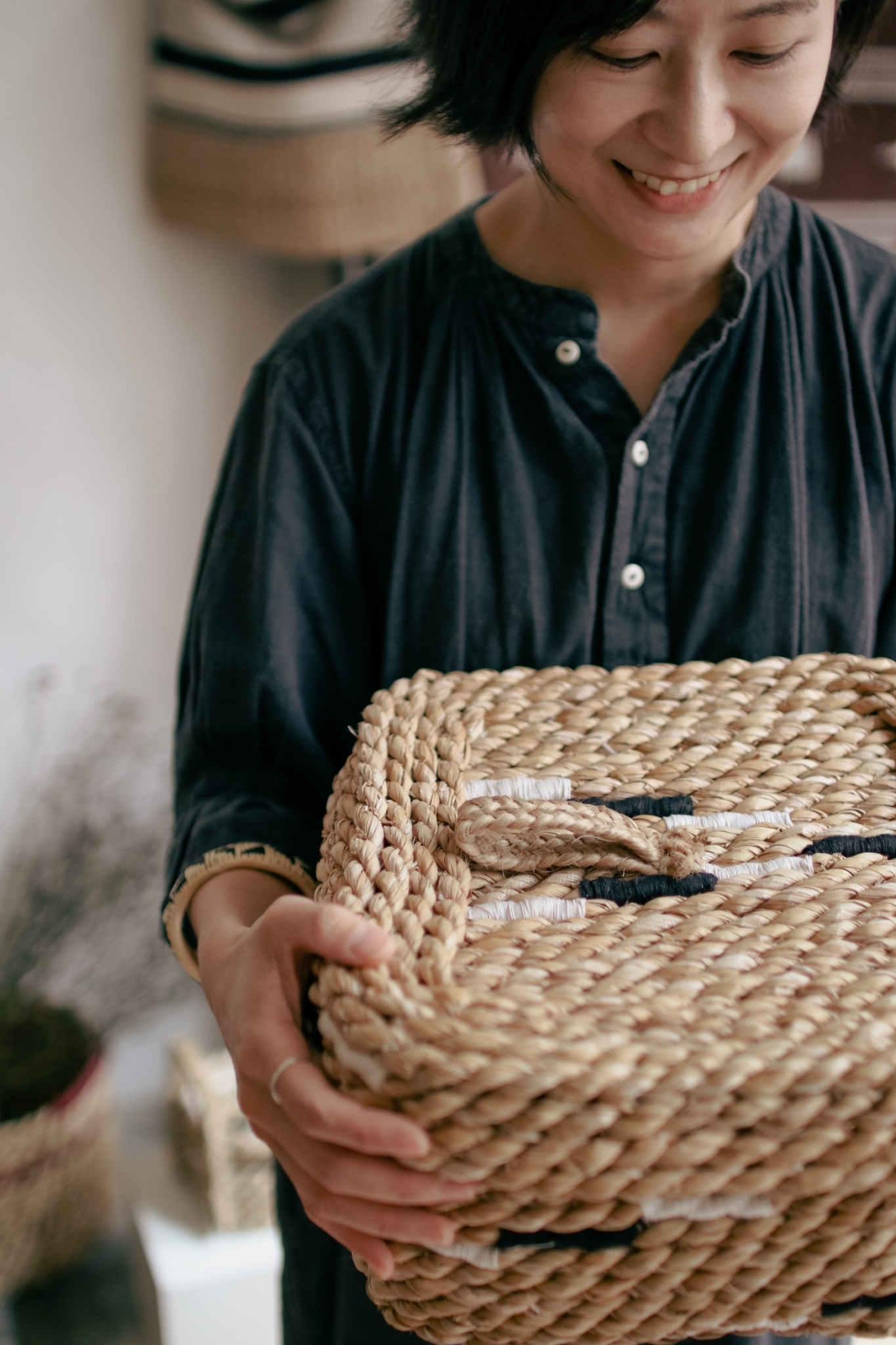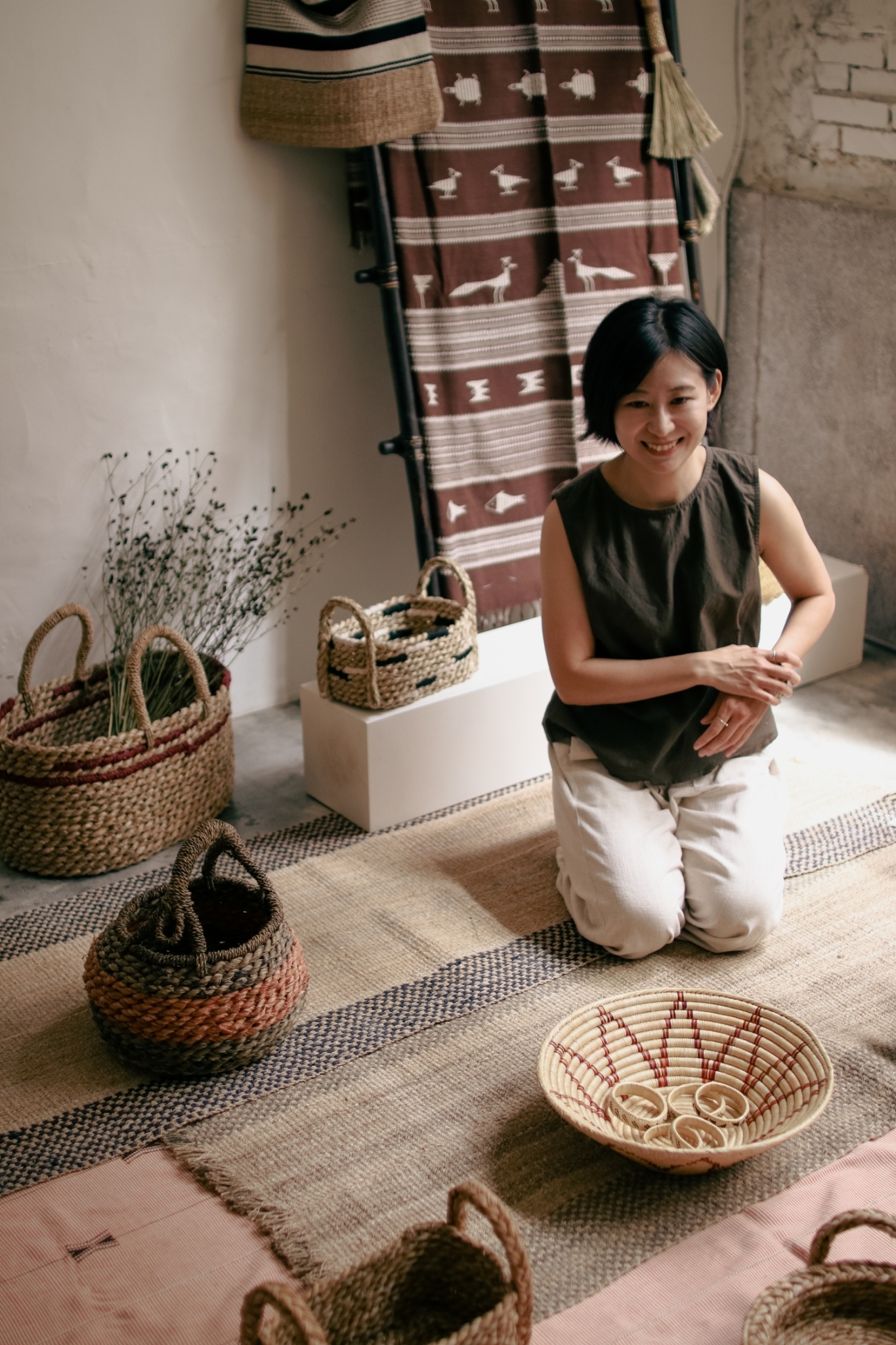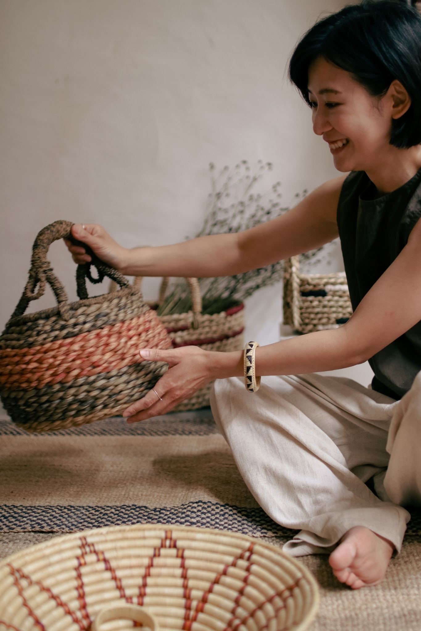 這也是為什麼我們很注重跟當地生產者個連結,當在實際看過當地製造者的流程、當地的文化、和環境所帶來的限制後,才會知道哪樣的設計和做法才會符合當地的生產條件,那些主流的主觀的設計其實可能是不適合的。例如繞繩籃是採集天然象草縫製的舊有工藝,在當地習慣染上鮮豔色彩,知道可以染色時就想過要客製顏色,但在與當地生產者溝通過後,才知道某些顏色需要用很重的染料才有辦法上色,但當地可能沒有處理染料廢水的設備或經驗,那這些色彩鮮豔的染料是否會對人體造成傷害,或對環境造成影響就不得而知。後來看到他們有一款籃子是用剩布製作,所以在討論後就轉化成以毛線或是棉線纏繞的方式來加入色彩,這樣的成品就變成既符合當地的工藝技術,也符合台灣的消費習慣與審美,像這樣把既有的文化工藝與當地天然資源結合,再加上我們品牌對於台灣市場的觀察,這樣的商品就是Ujeli跟生產者一起創作出來的。