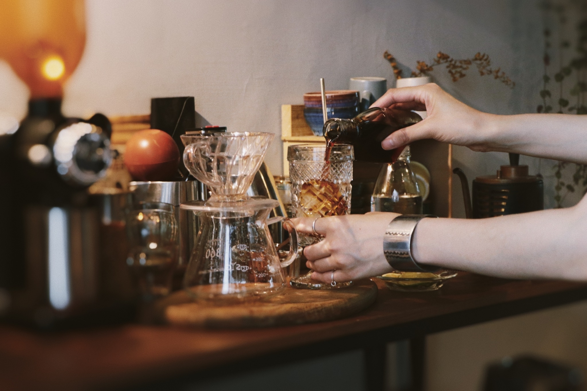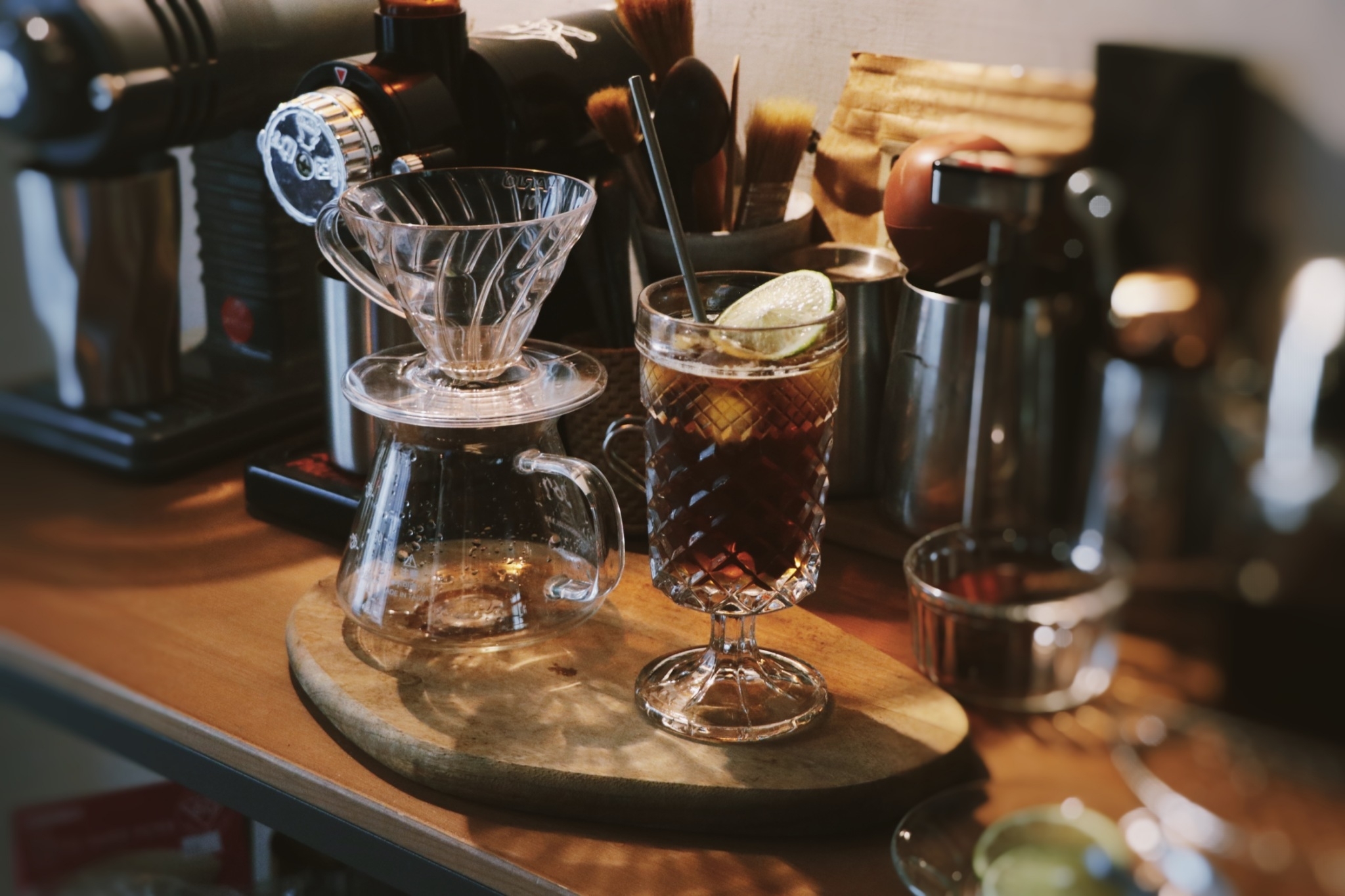冰滴咖啡與舒味斯通寧汽水,1:1,喜歡這種不需刻意拿捏的搭配比例,加入冰塊後輕輕攪拌的清脆聲響伴隨午後蟬鳴,放上檸檬片,看著杯身沁出冰涼水珠,決定脫下披肩,暫時放下手邊的工作,走出冷氣房,享受夏季才有的暢快淋漓!
