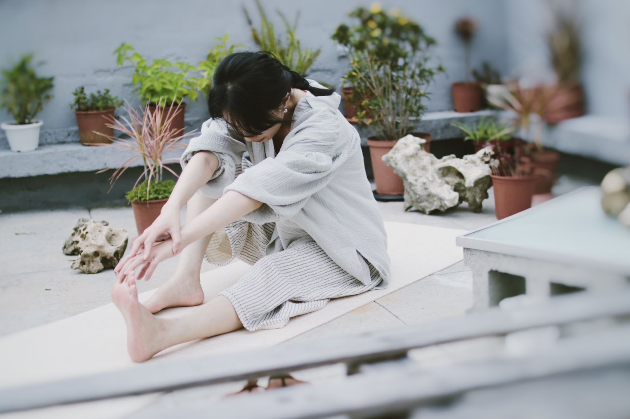 趁著好天氣,穿著舒適的家居服來到屋頂活動一下身體,冥想後深深吸氣,想像自己像葉子行光合作用一般舒展身體,忘卻肩膀上的壓力,將煩惱留在時間邊緣,大大吐一口氣後,把重心放回腳尖紮穩步伐,帶著運動過後的輕盈身心迎接嶄新。
