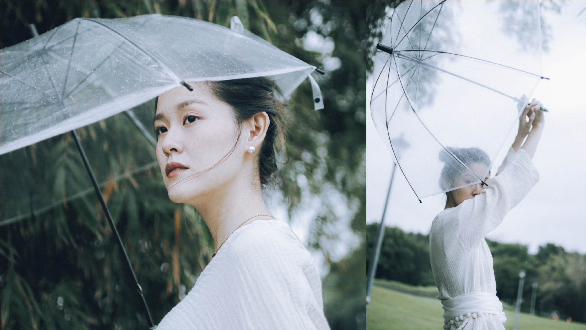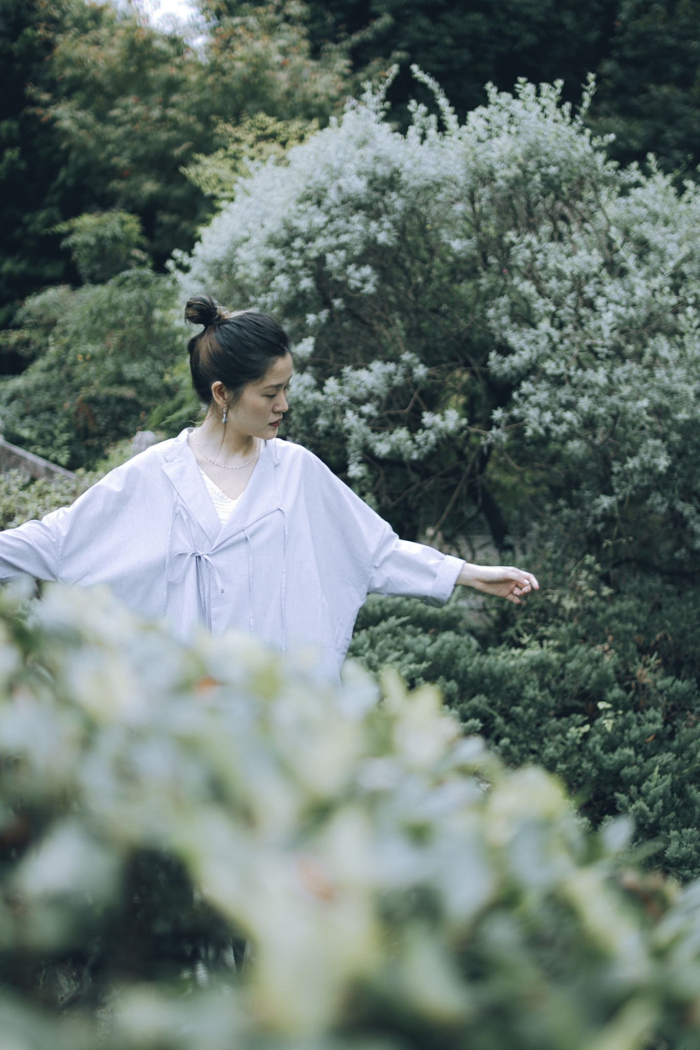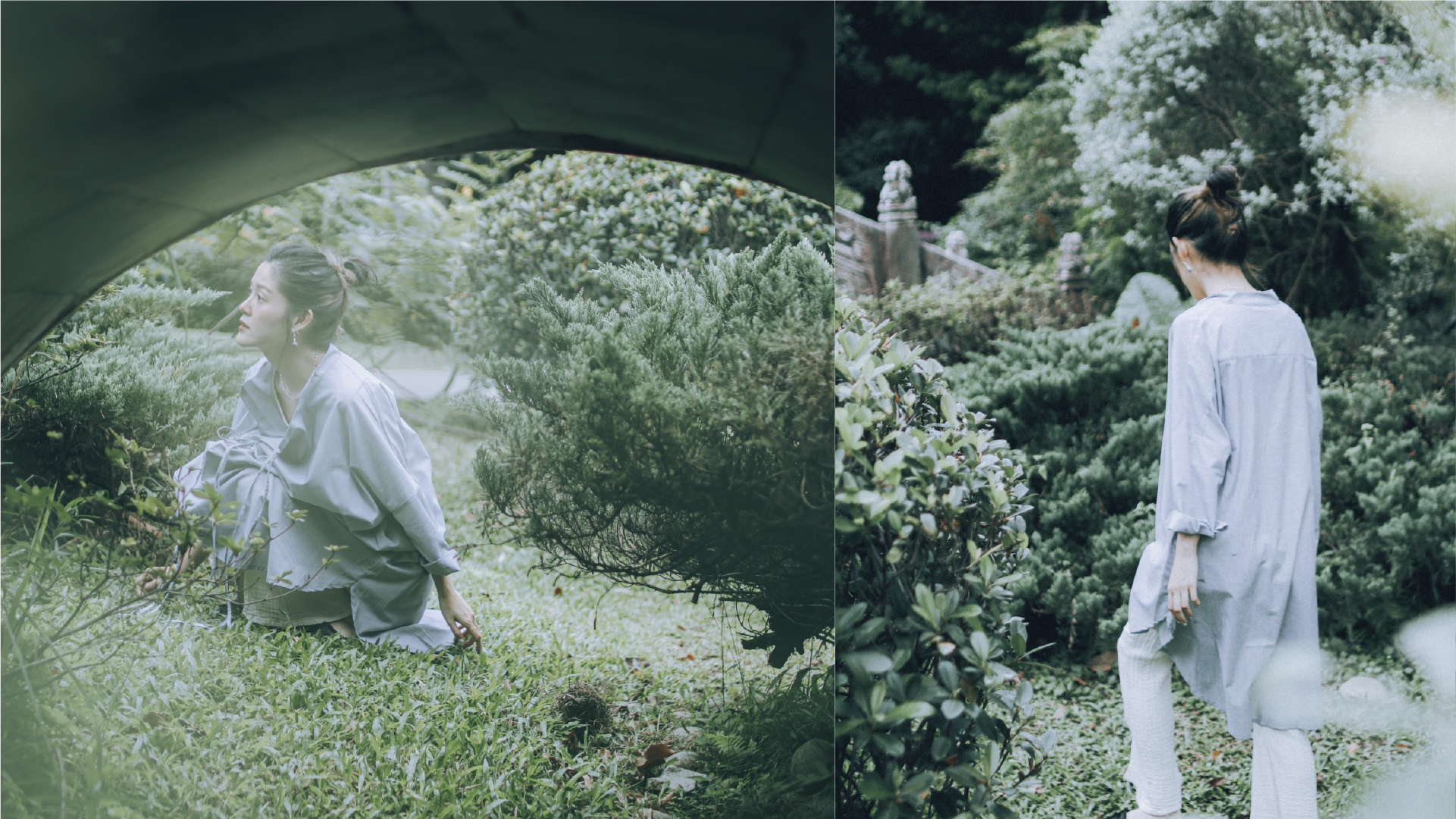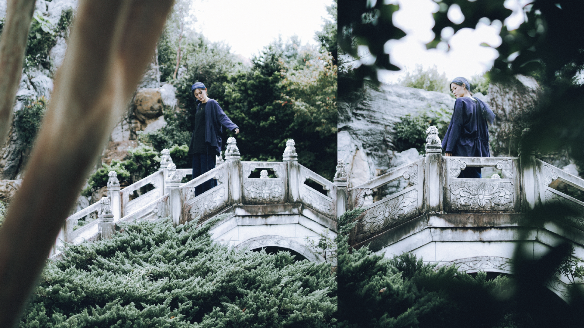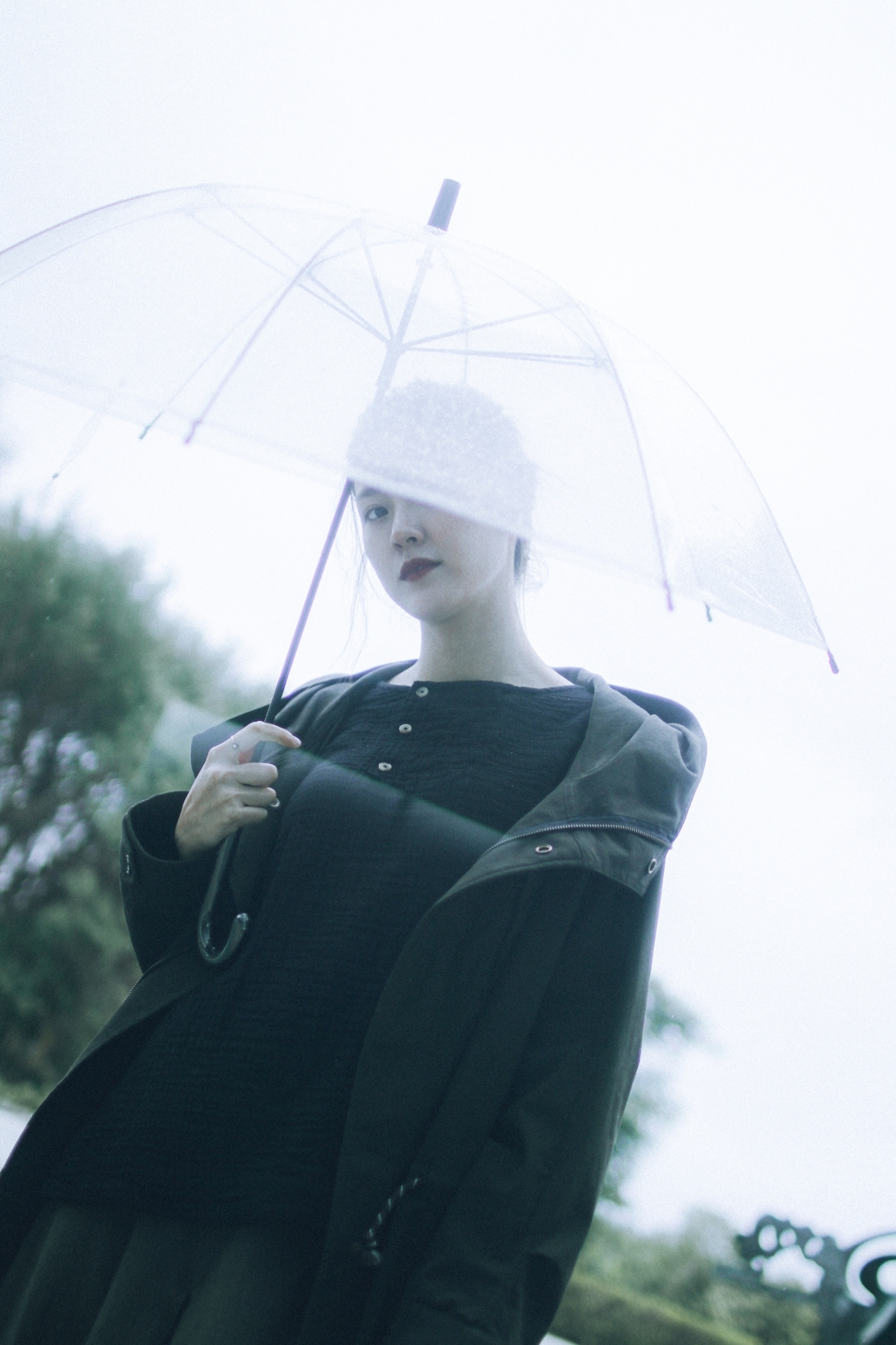 神秘的墨水色調穿搭,在墨黑的基礎中點綴深藍,再搭配微透的同色系圍巾編髮,將自然典雅的個人氣質悠然呈現。