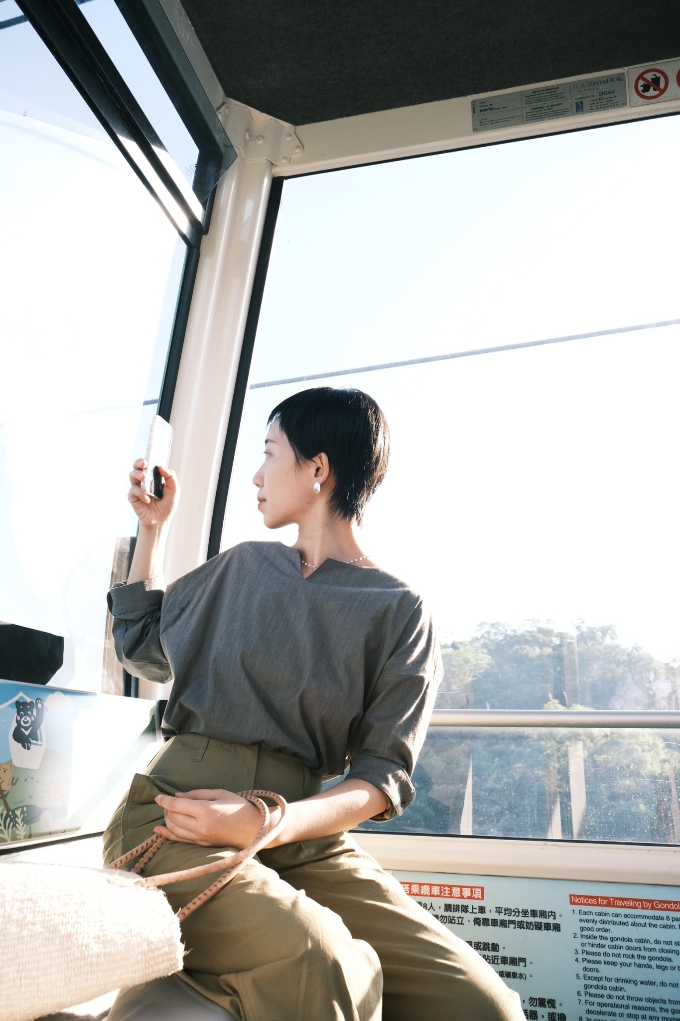 穿梭於都會叢林與大自然之間,透過纜車的窗影看見自己,穿上中性風格的自在褲裝,遠眺期待,將未來盡收眼底。