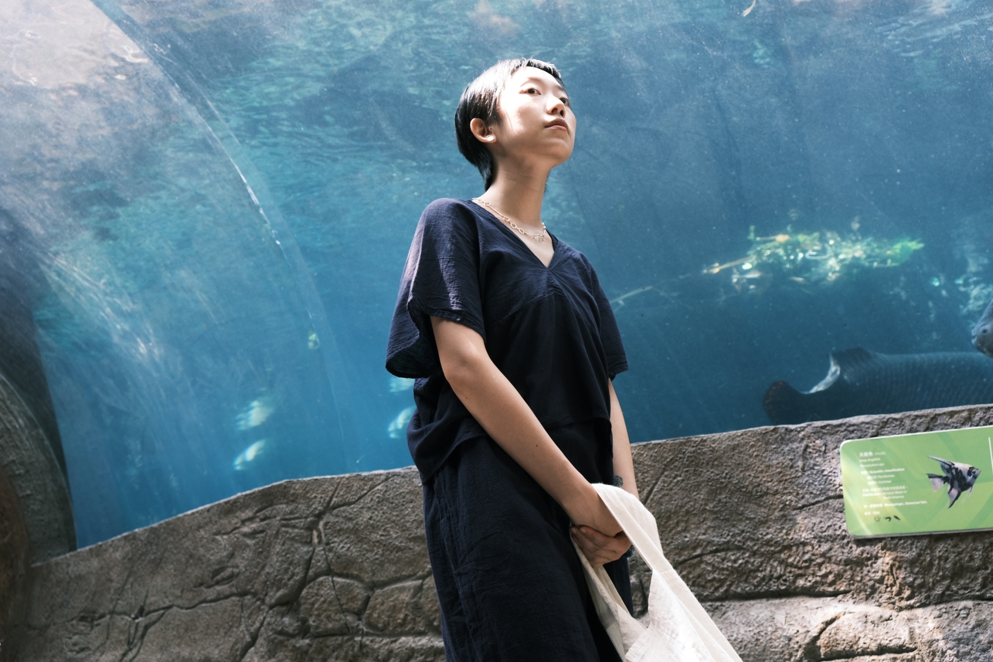 用各種藍色將自己包裹,讓秋季的氛圍層層疊疊攀附,在隨著波浪起舞的盪漾水草中,與魚一起,成為水底世界的藍色光影。