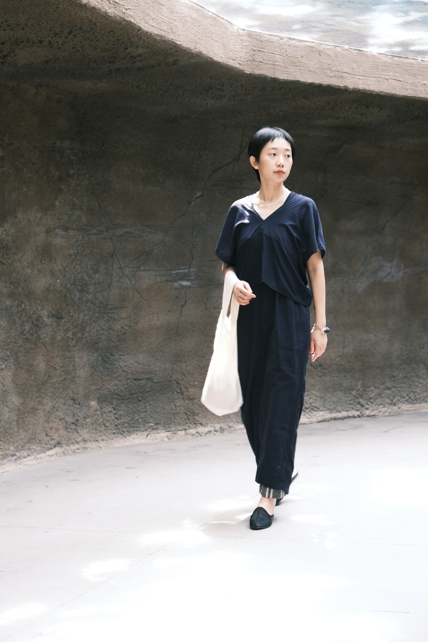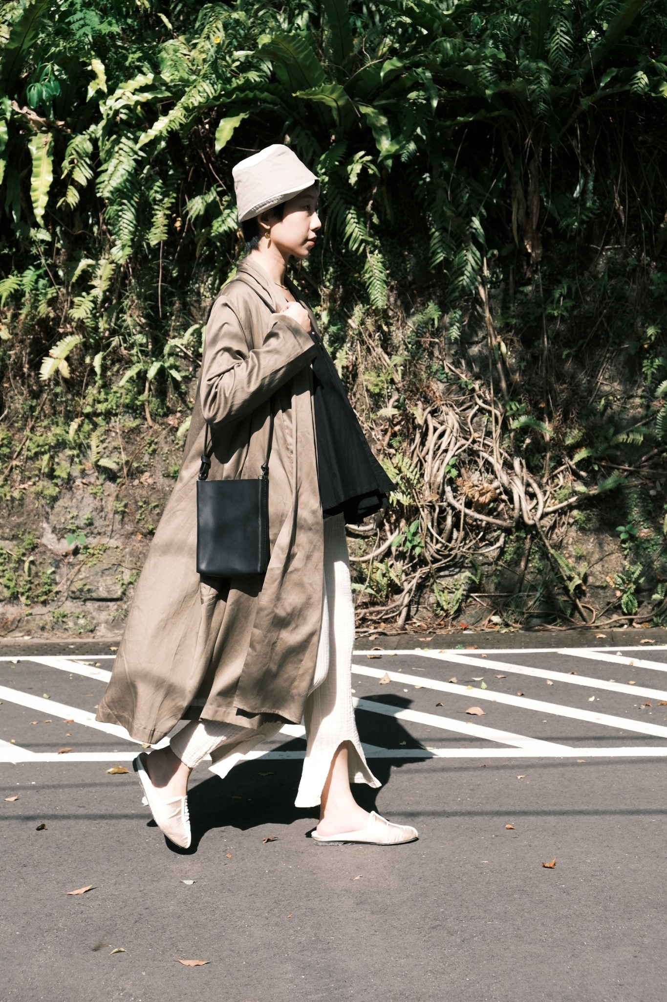 寬鬆自在宛如拂過髮梢的風,以輕巧的步伐點綴在灰色的水泥叢林間,時而堅定如樹,時而從容自在如初秋的落葉。