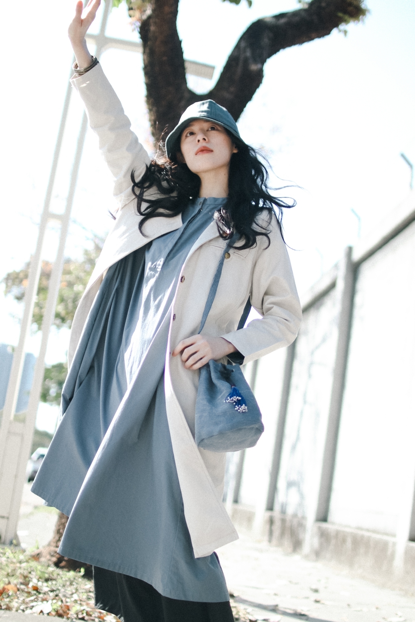 都會感的冷灰色調藍色氛圍,挺版的俐落外套讓整體更顯帥氣,搭配氣質流浪的束口流蘇小包,俏皮浪漫衝突知性幹練,讓整體個性更加立體有型。