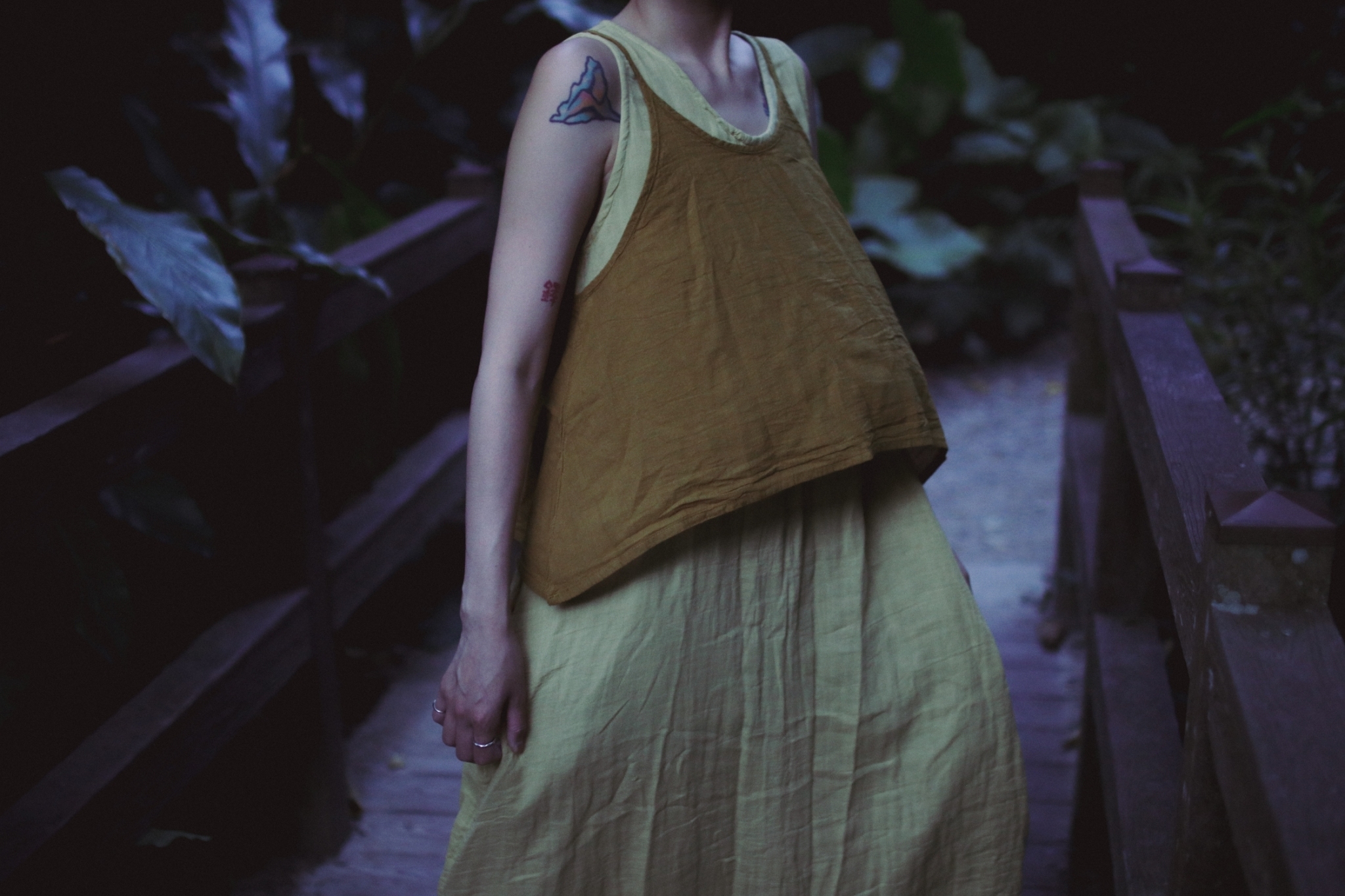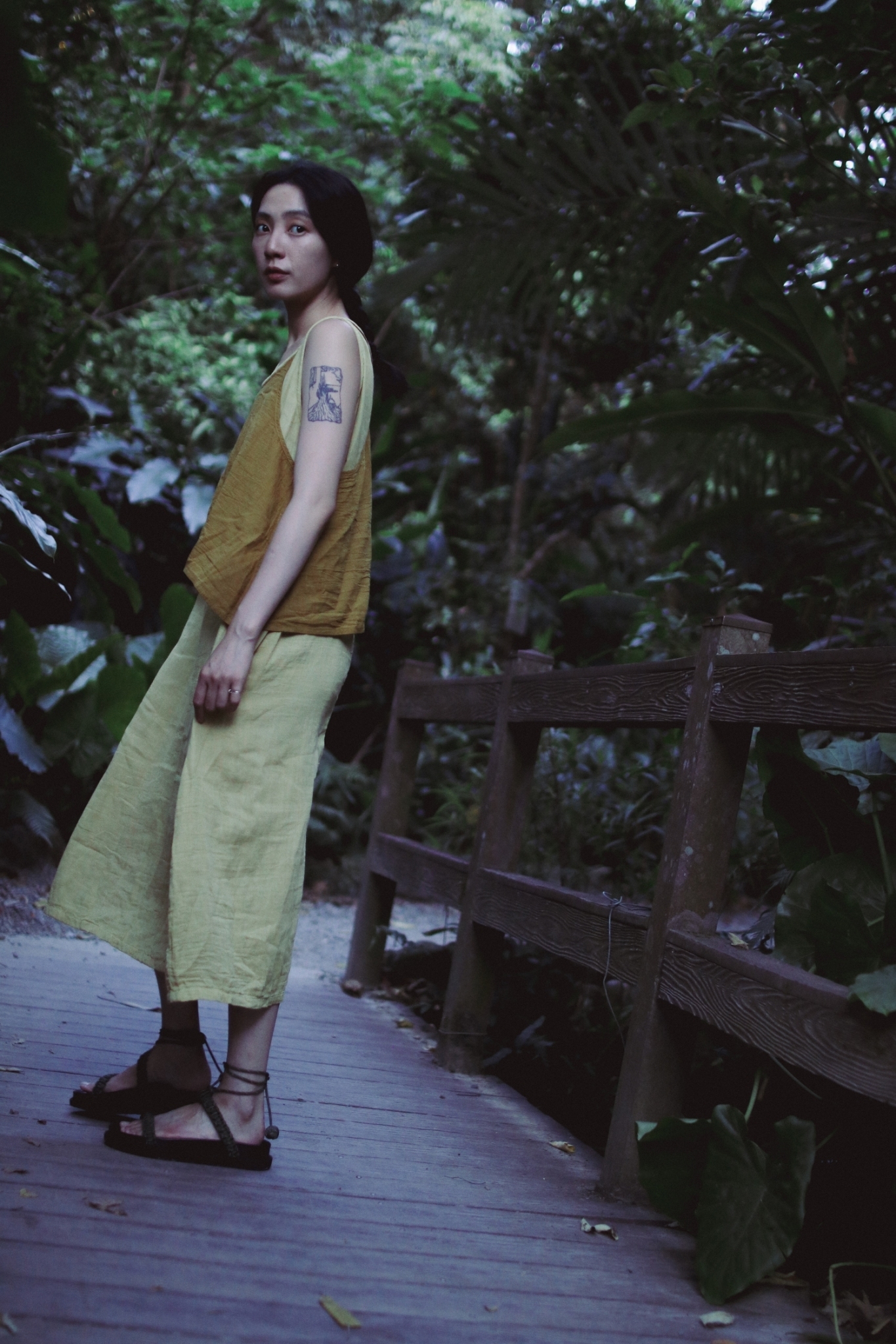 樹冠將炙熱擋下, 葉間竄逃的陽光點亮著未知的方向,像往上的階梯一樣。