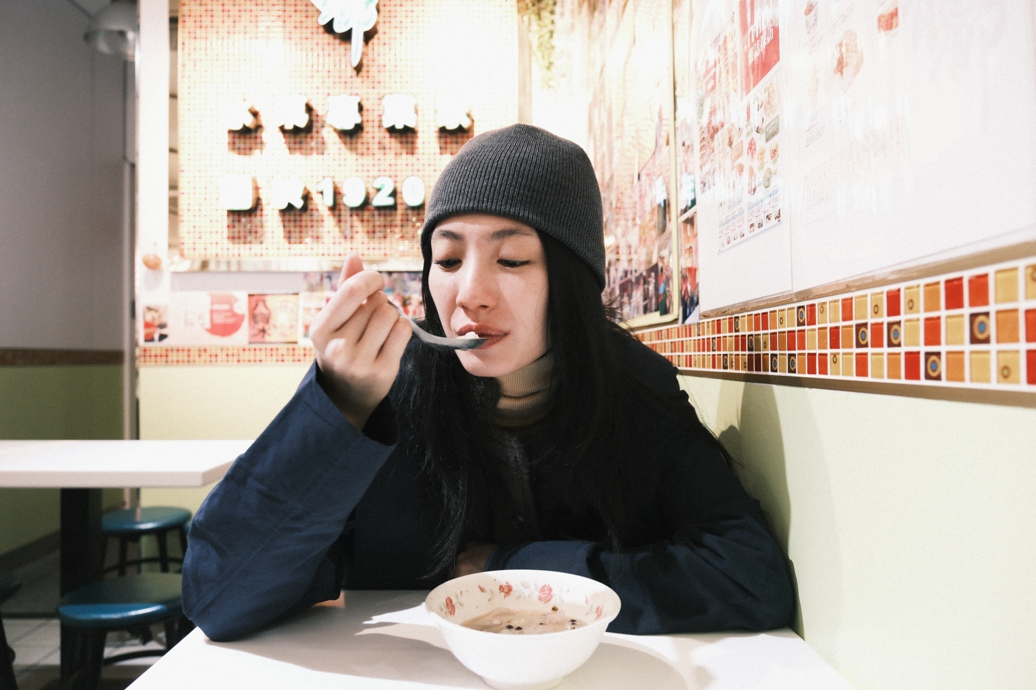 冬天的尾巴滑過街頭,春天的影子在冷冽的空氣裡旋轉,像是透明容器裡的深藍色墨水。