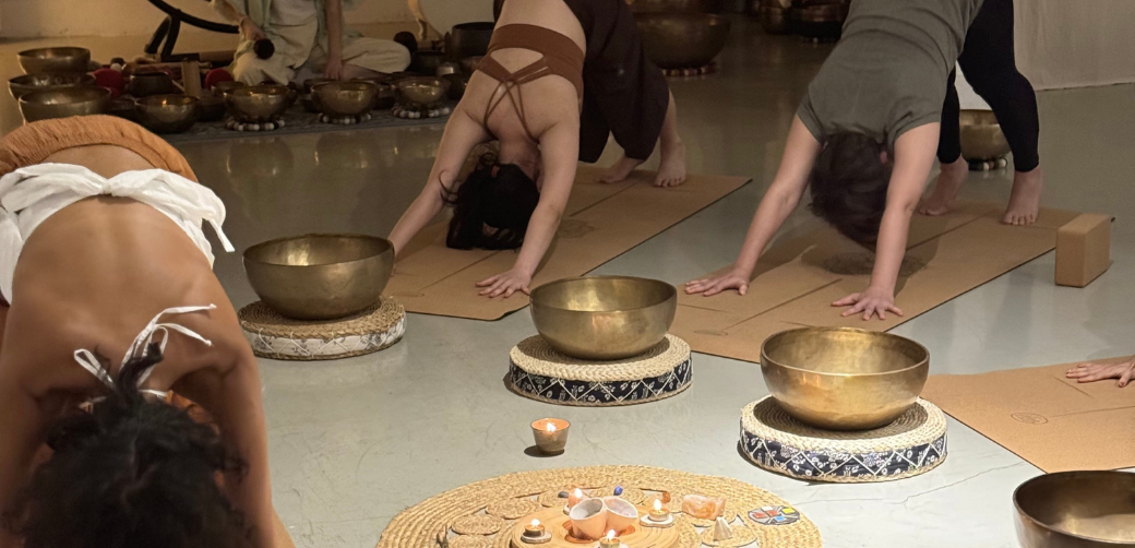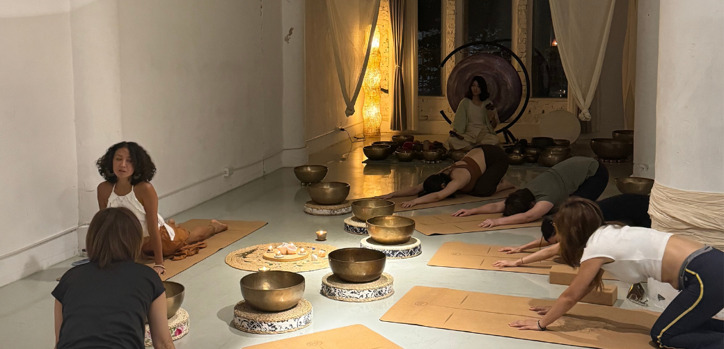 結合頌缽聲音共振與修復型瑜珈,引導呼吸與動作協調,