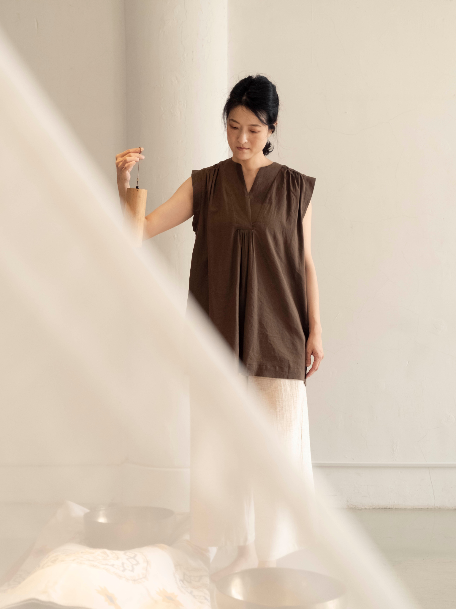 讓布料隨著呼吸輕輕流動,無論是在音療的靜謐時刻,或日常的每個轉身,都能感受到一份柔軟、自在與自然同行的溫度。