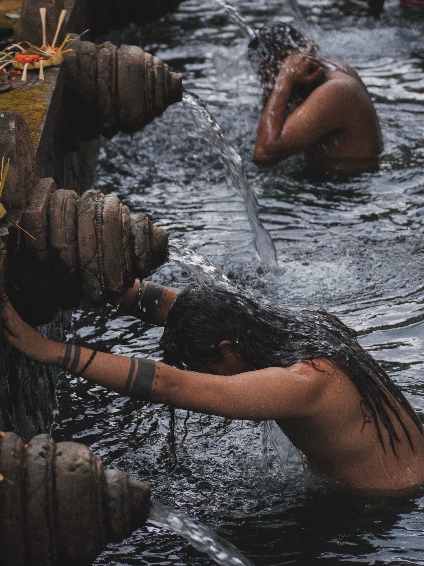 當我按照規矩一步步的圍上寺廟提供的沙龍、更衣、排隊,整個過程會慢慢地把你帶進一個準備好的狀態。清澈的池水非常乾淨,可以看到腳趾,當你站在水中,會自然變得專心、平靜。