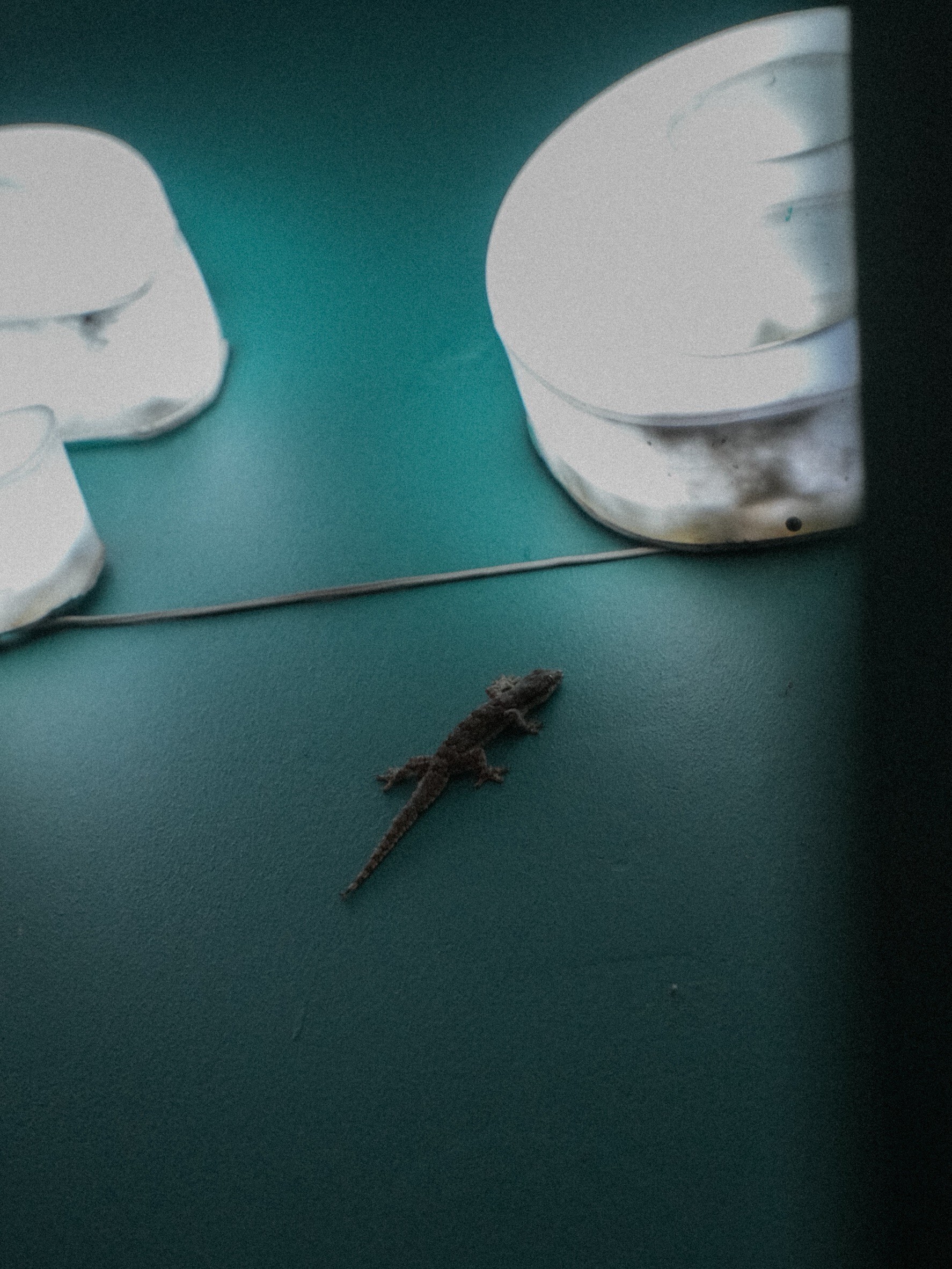 那幾天我住的 Villa 浴室裡,出現過一隻非常大的壁虎。不是台灣常見有點可愛叫聲是娃娃音的那種小壁虎,是一隻體型壯碩到會讓你需要站在門口深呼吸一下才敢走靠近的尺寸。到底有多大呢?就是當牠跑起來的時候,腳掌拍在牆上居然會發出,啪、啪、啪,聲音。