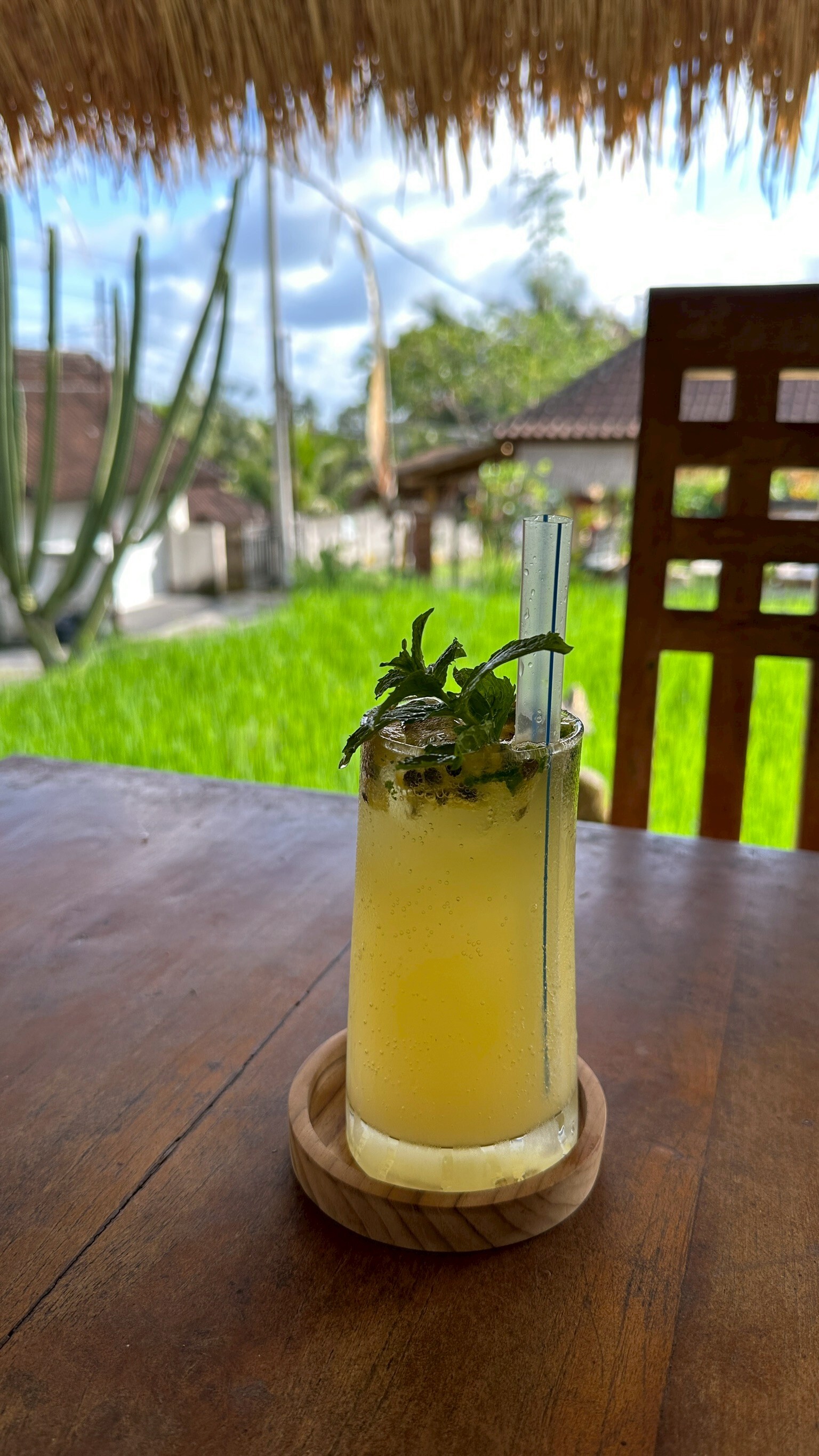 當地有很多餐廳是半戶外的,坐在室內也可以感覺到自在吹進來的風,搭配著亮到幾乎刺眼的稻田,來自不同國家的旅客們就這樣自然的共享眼前的風景。