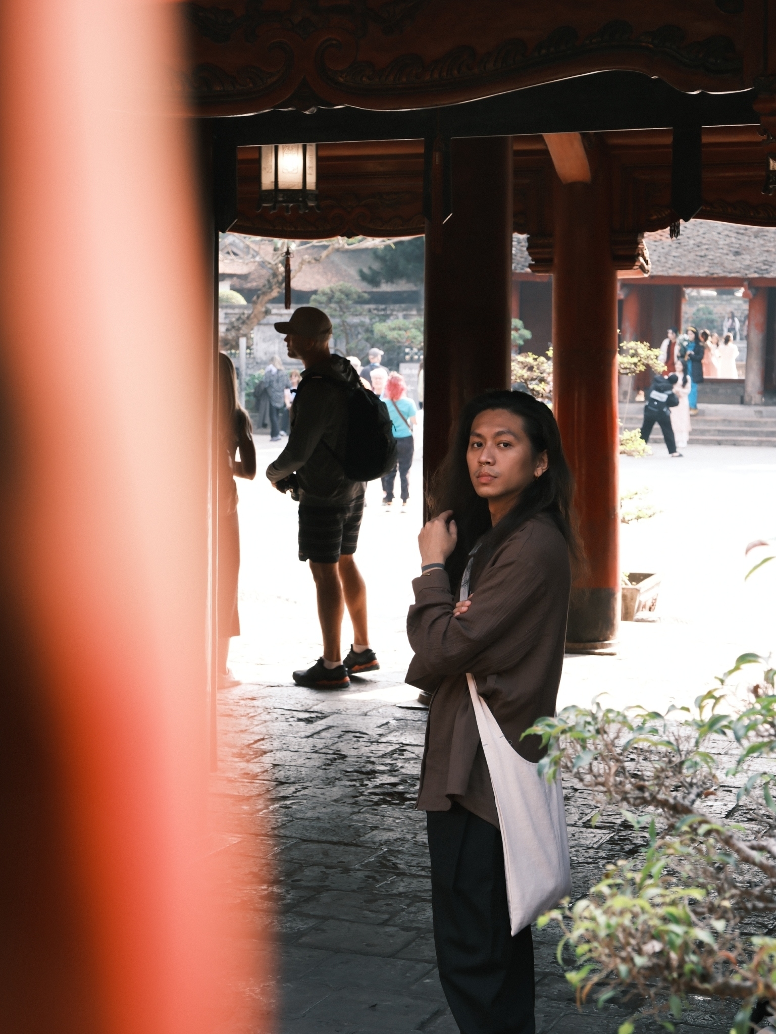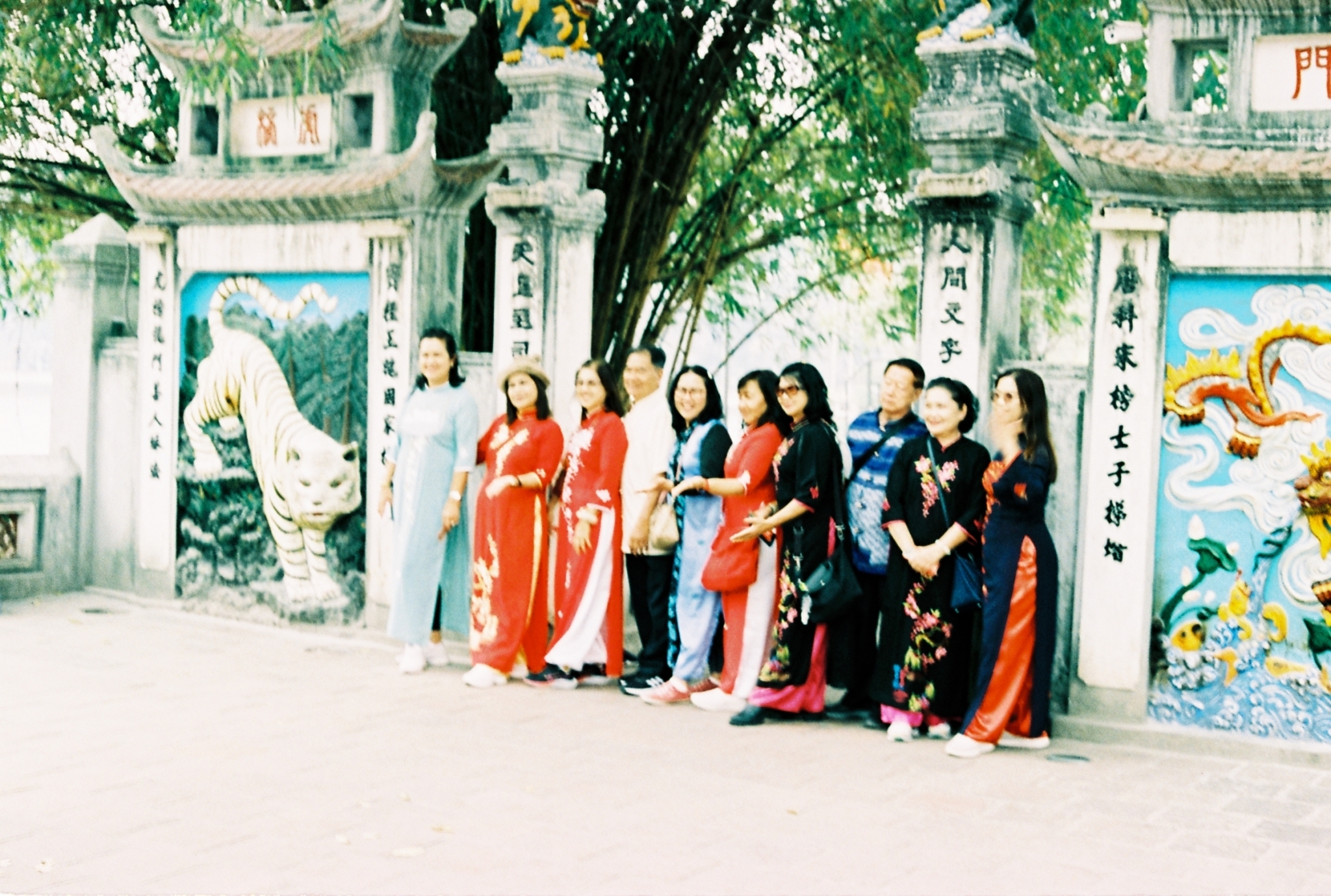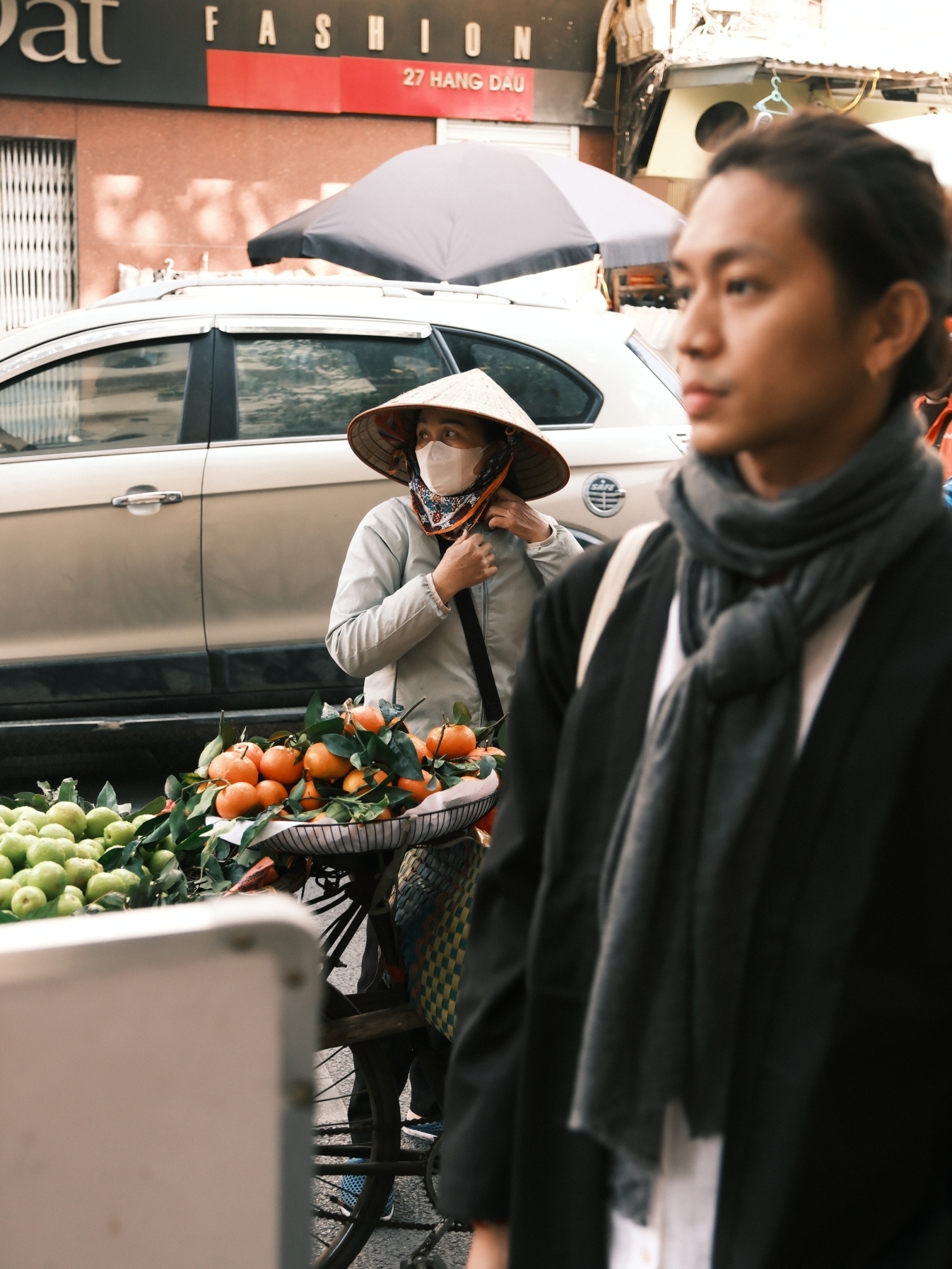 散步在河內的街道上,同一個社區內左邊是台北常見的鐵窗圍籬,右邊是歐洲風格的對開大門;要去那個有高聳尖頂和彩繪玻璃的知名大教堂前,會先經過一座有著雕花窗櫺和紅色樑柱傳統廟宇。