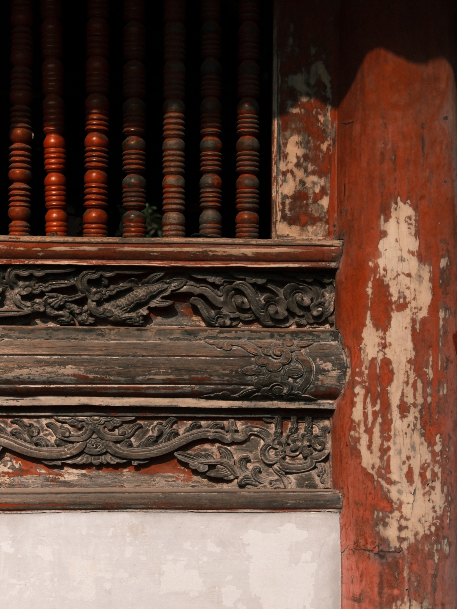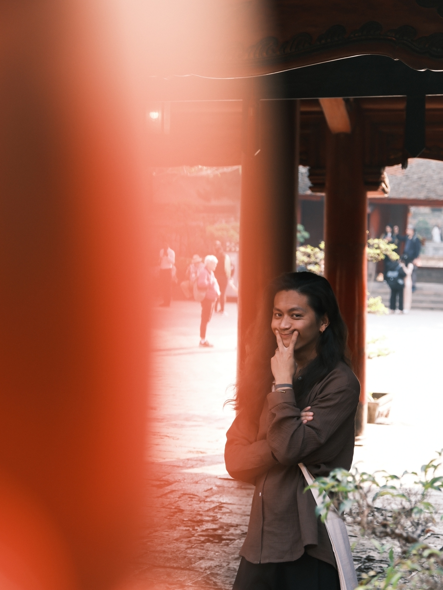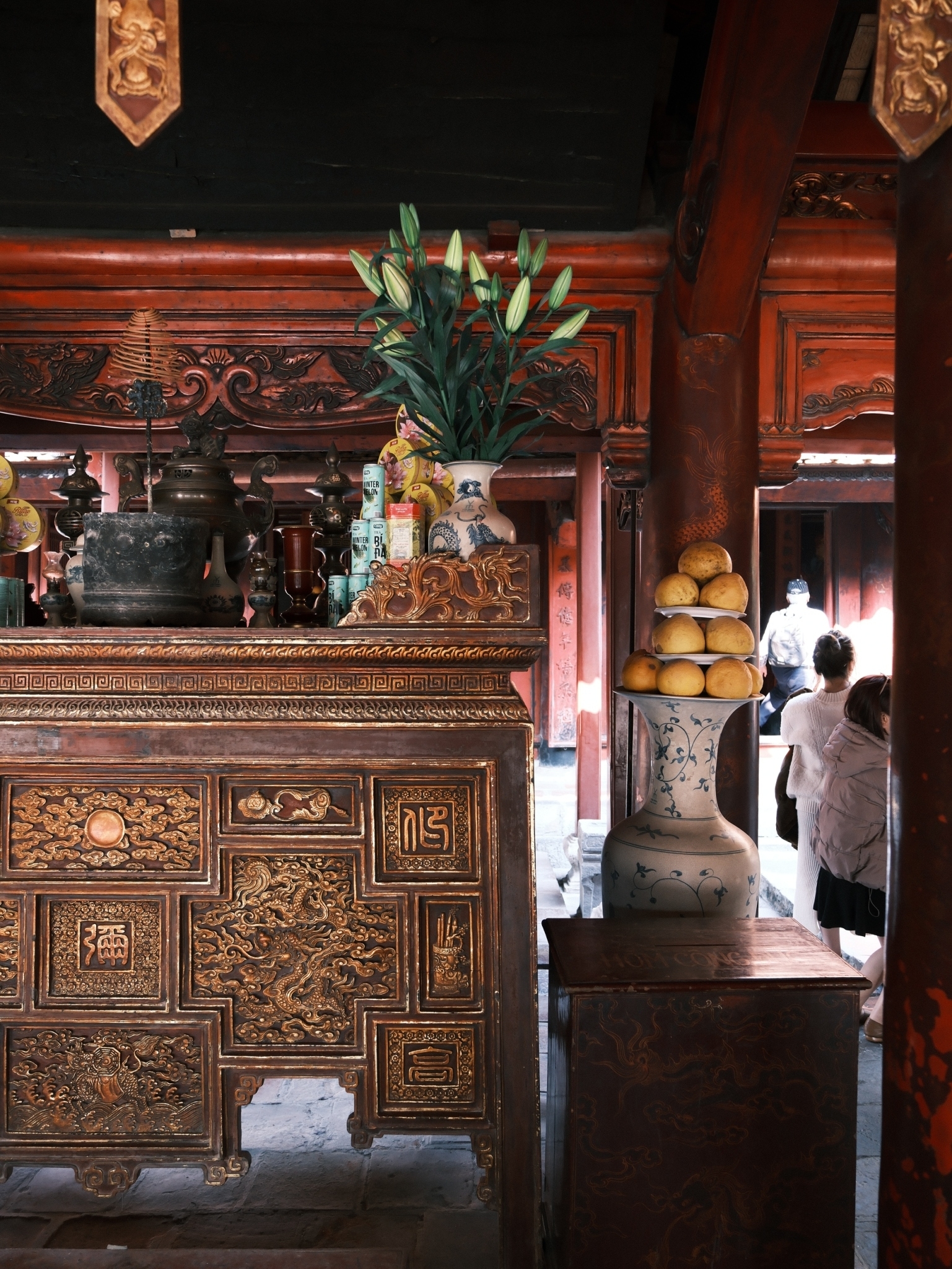 散步在河內的街道上,同一個社區內左邊是台北常見的鐵窗圍籬,右邊是歐洲風格的對開大門;要去那個有高聳尖頂和彩繪玻璃的知名大教堂前,會先經過一座有著雕花窗櫺和紅色樑柱傳統廟宇。