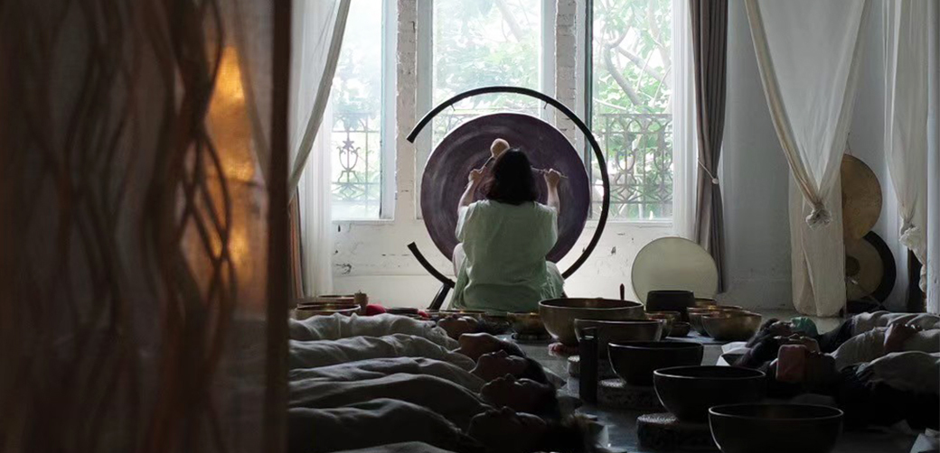 藉由頌缽的聲音流動達到平靜放鬆的狀態