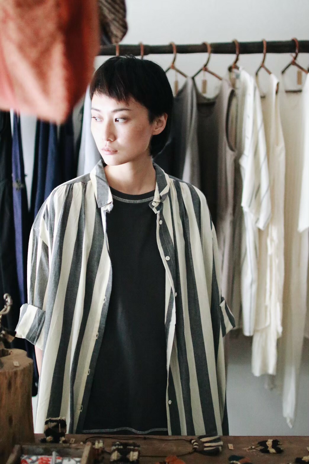 低調簡約的黑灰色階,用看似單純的特色剪裁單品來表現個人特色,換季時可運用長袖的長版襯衫作為外套,選用寬條紋的外套讓整體的黑白灰的配色增添俏皮的休閒感!