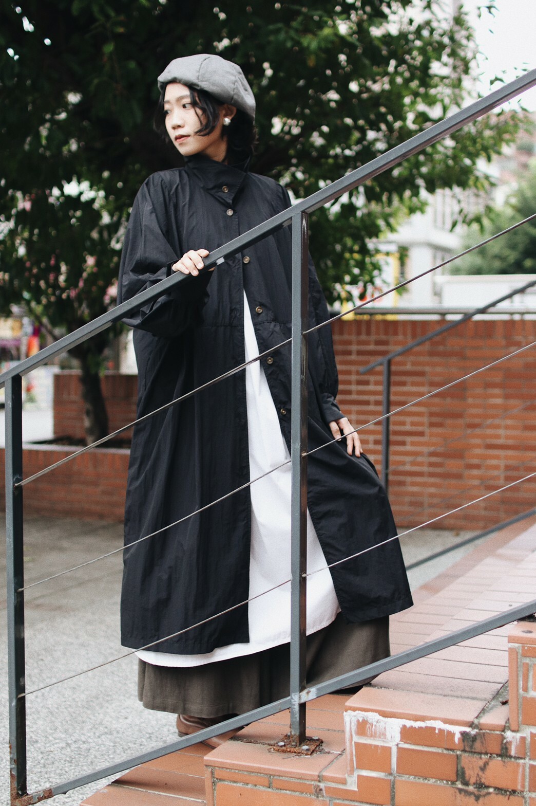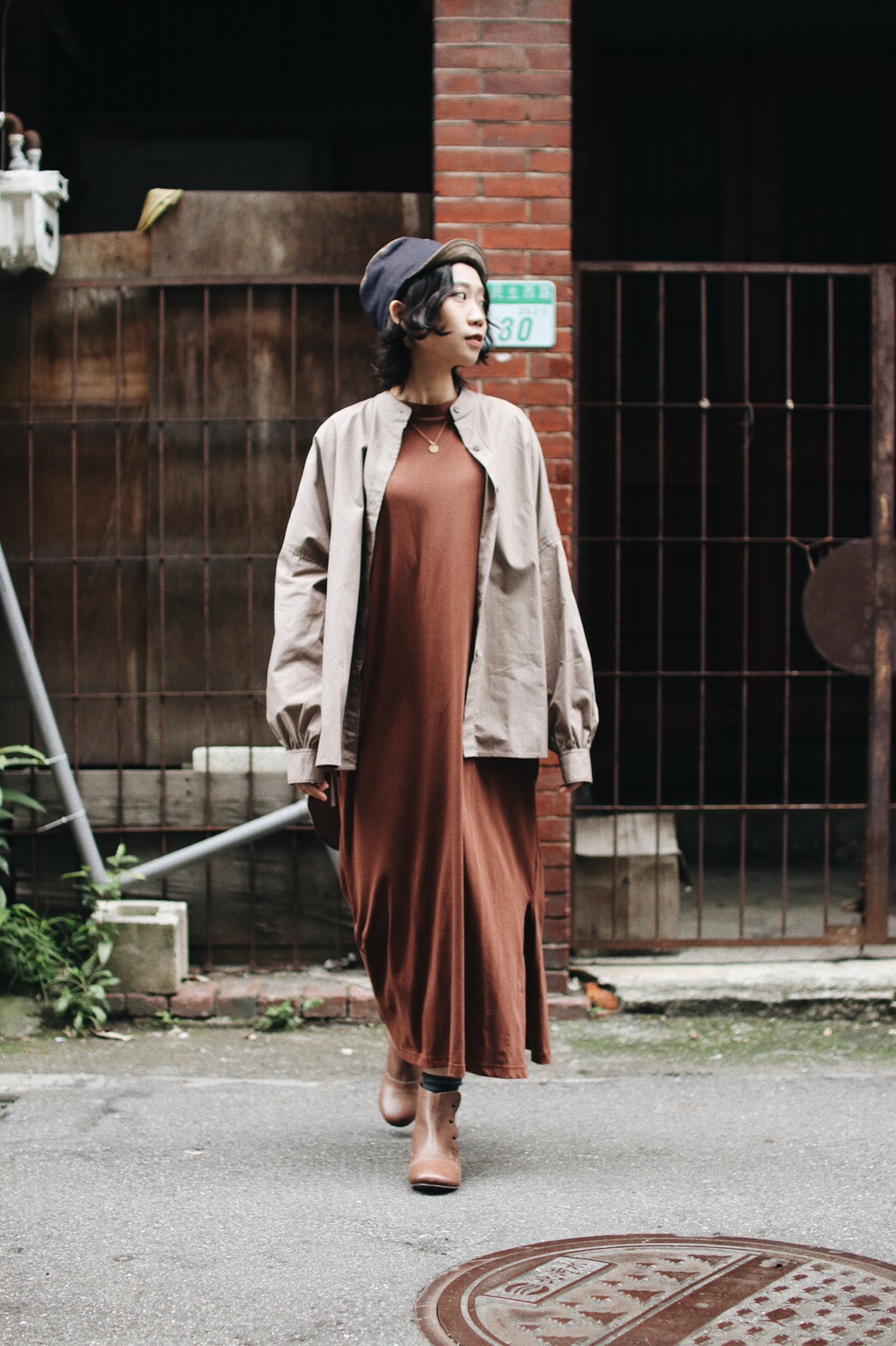 開扣長版洋裝也可當作風衣外套,搭配長褲或是捲起袖口露出手腕的飾品或長袖內搭都很適合,是最好入手的多層次穿搭單品!