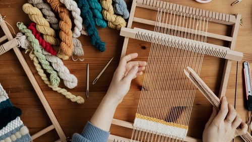 「手織棉」則是每個步驟都由手工織製成的棉織物。手紡棉紗的紗線會粗細不均,於是使用手紡紗線所織成的布會呈現出凹凸不平的特殊質感。因為手工織機的寬度限制,常見的手織棉寬度多在80公分以內,而手工編織的布料一定會有大小不一的織紋孔隙,於是也容易有染色不勻和掉色的現象。不過這些看似缺點的種種限制剛好也都是手織布的魅力,因為這樣,每一塊的手織布都是獨一無二!