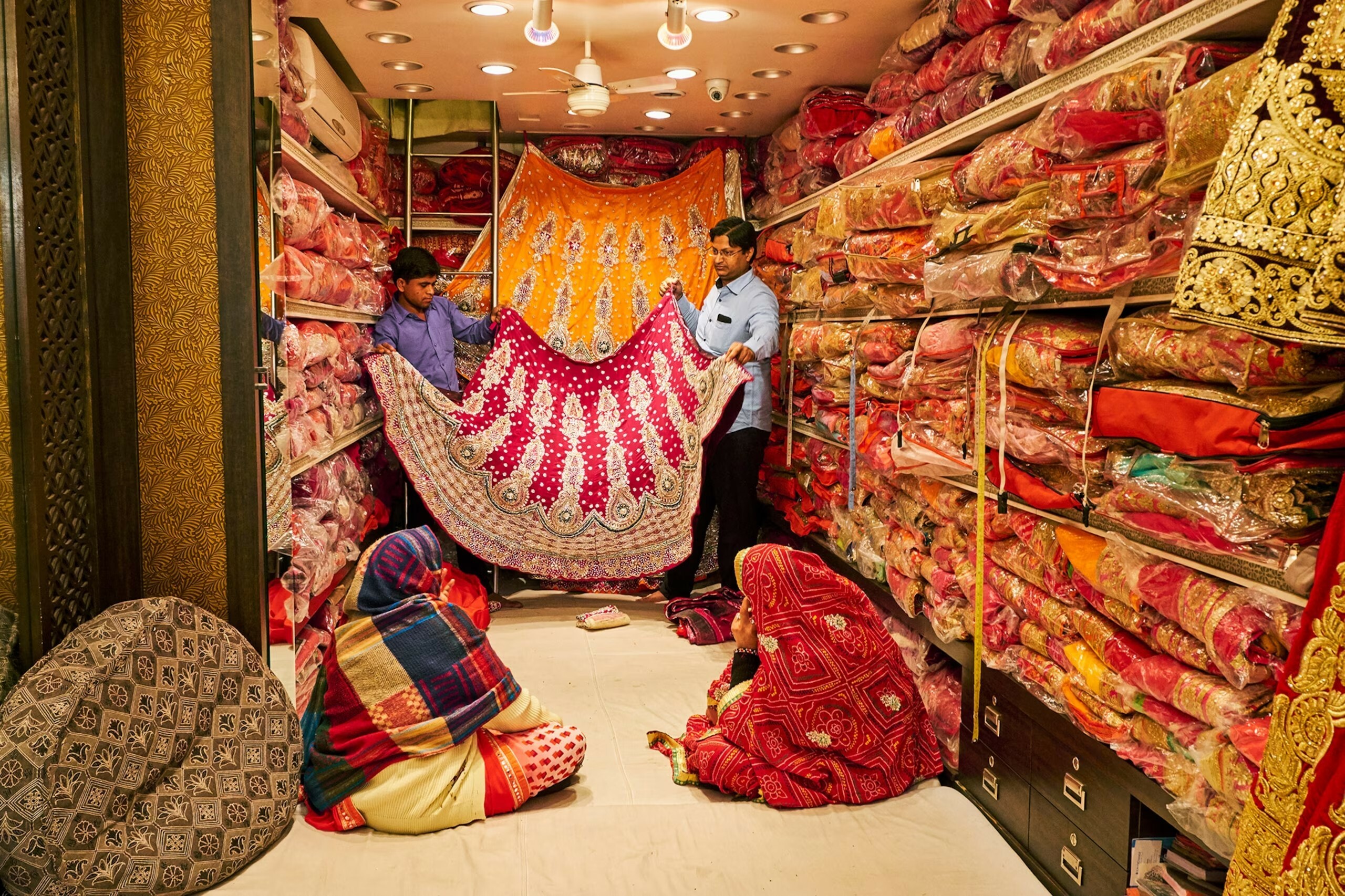 ▲ 正在齋浦爾的傳統紗麗店選購紗麗的婦女(Photo cridit: Tuul and Bruno Morandi)