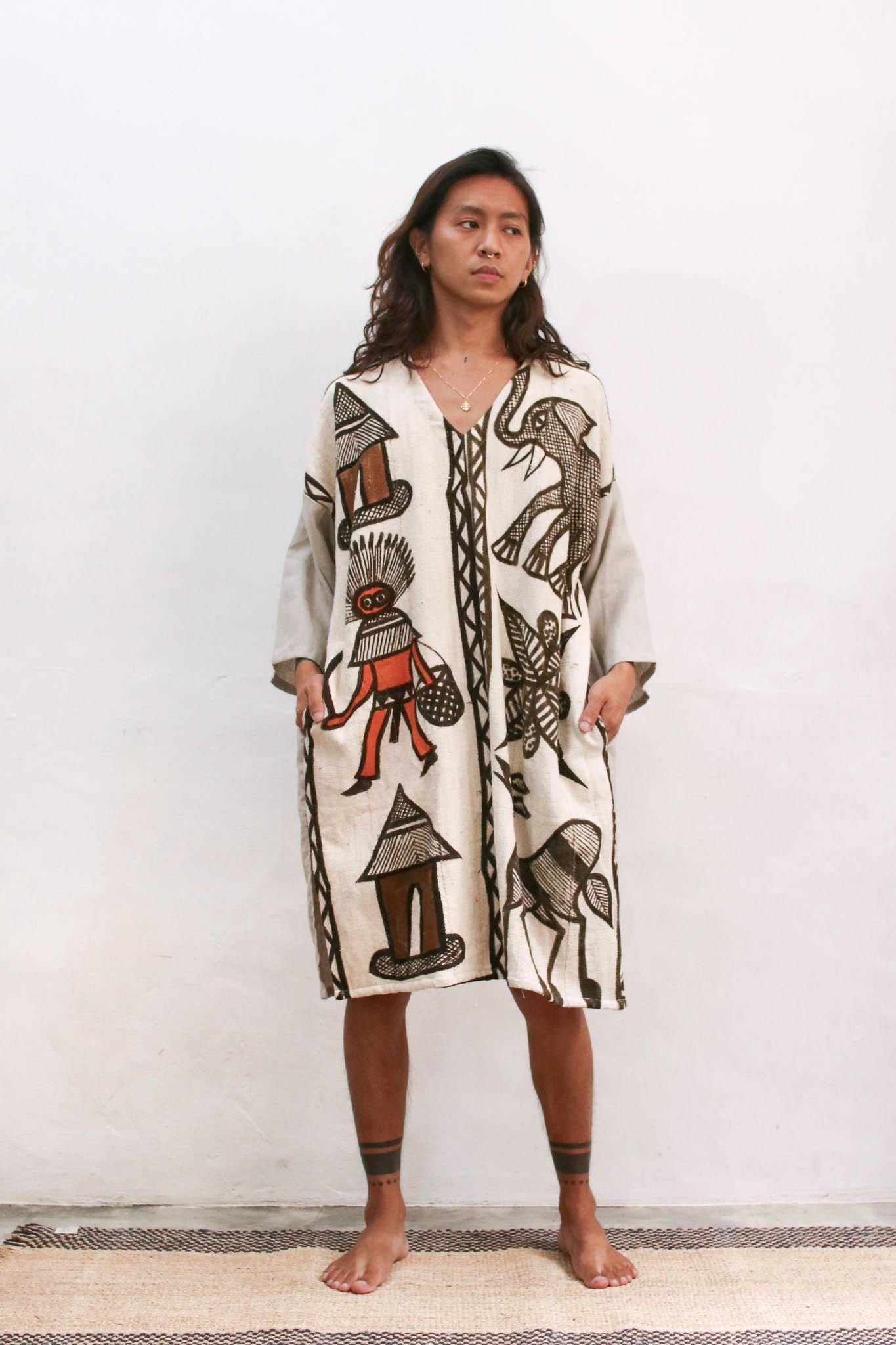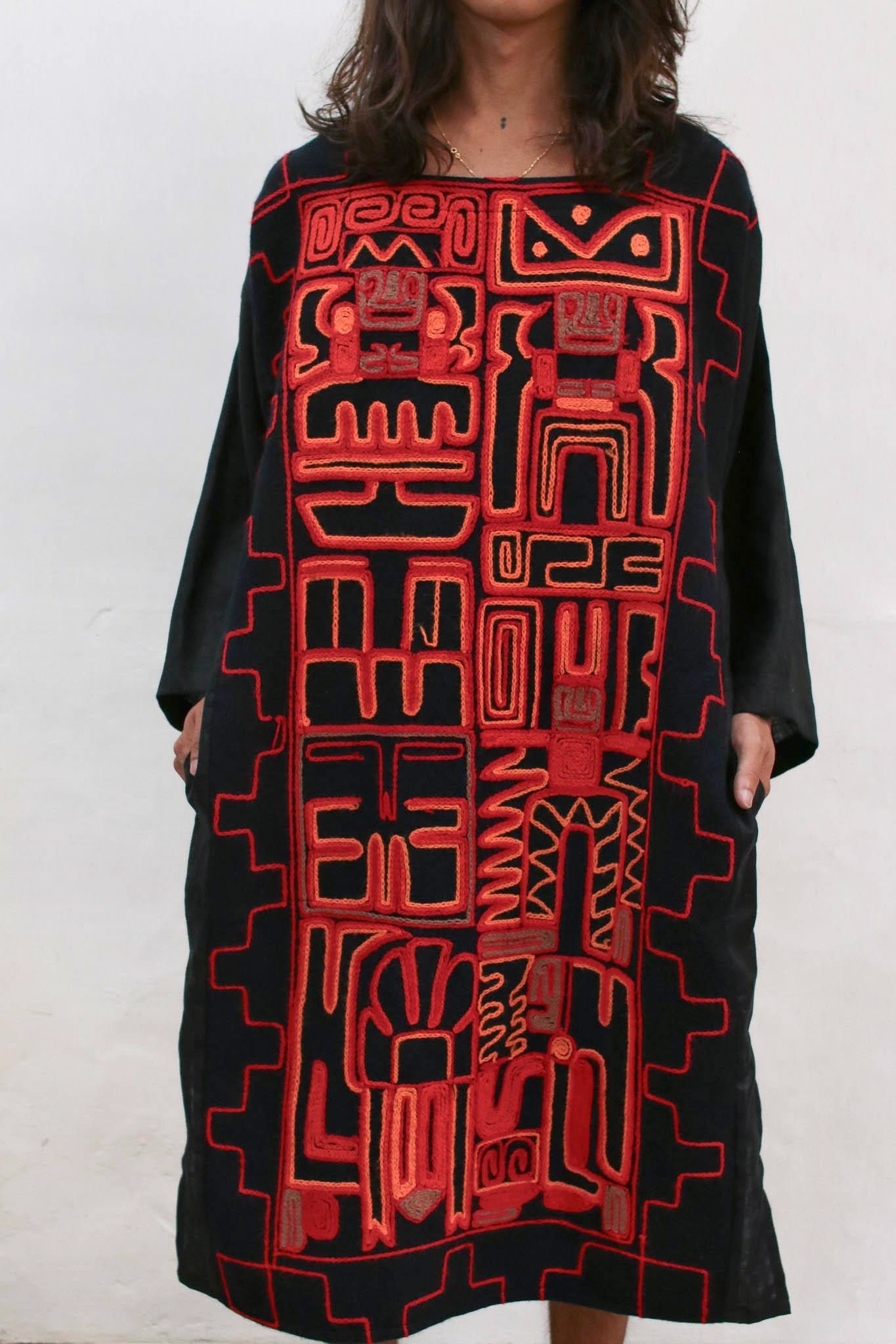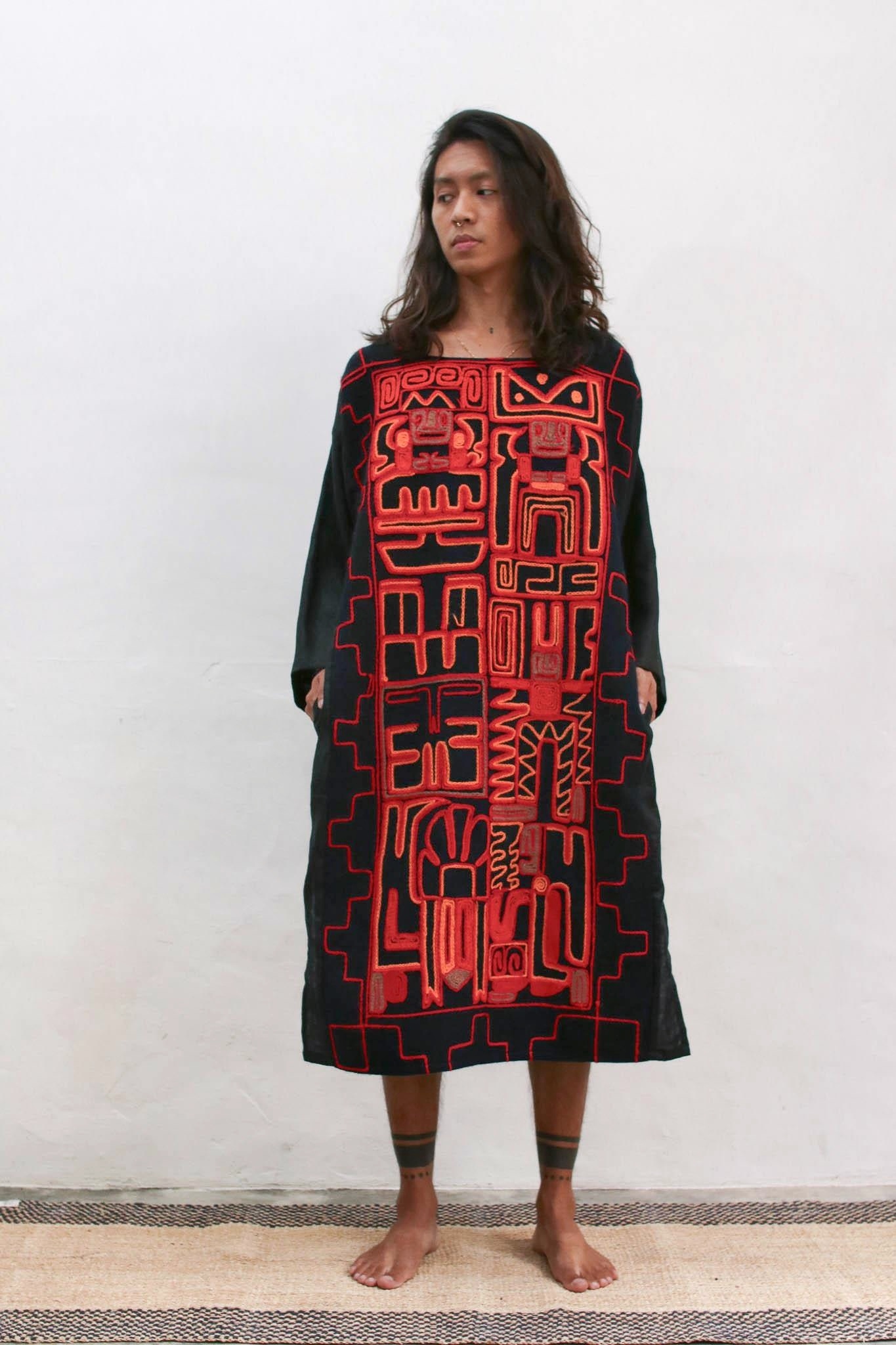 使用印加圖騰的秘魯刺繡製作,一件充滿藝術色彩的特別長袍。