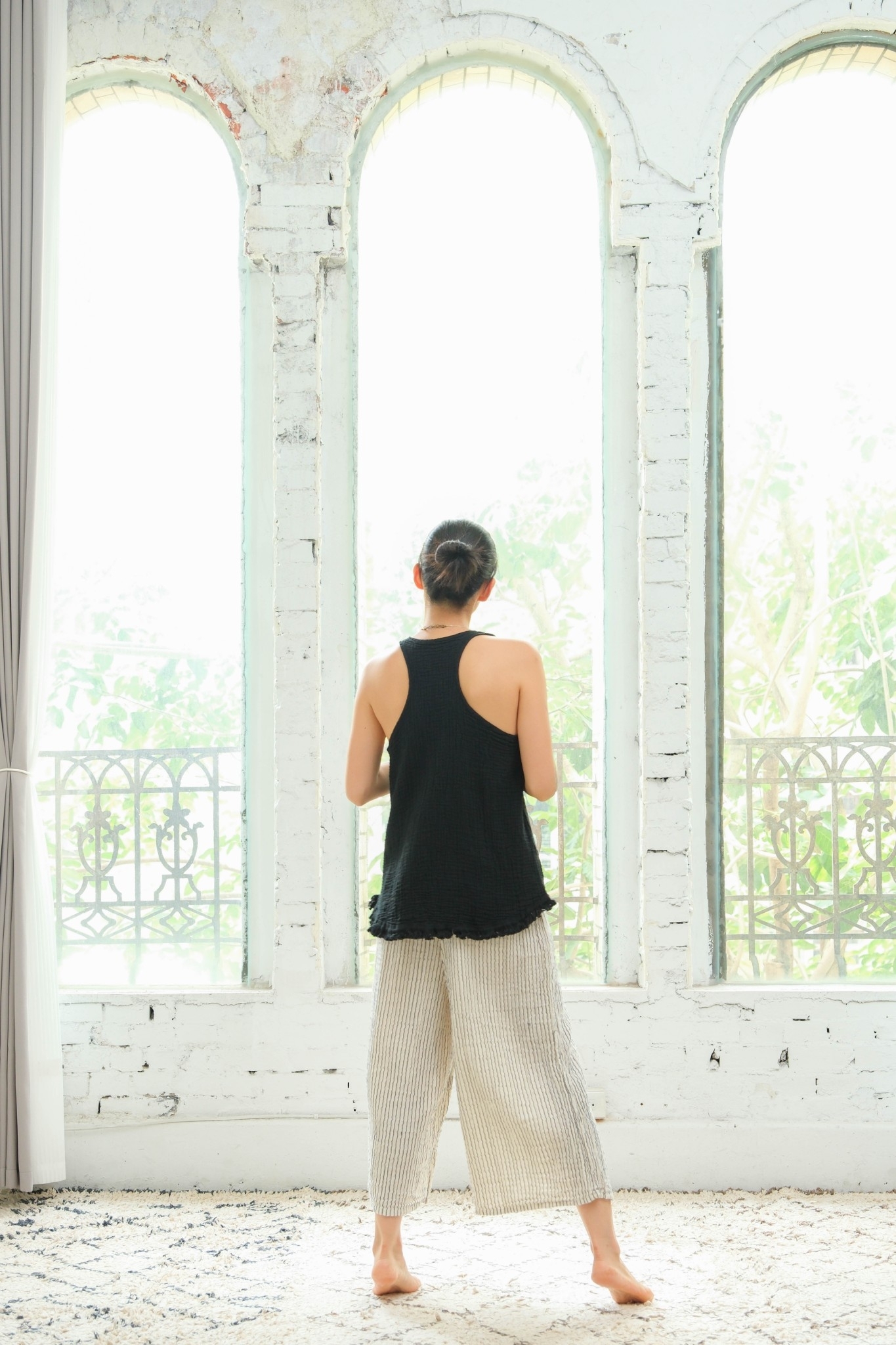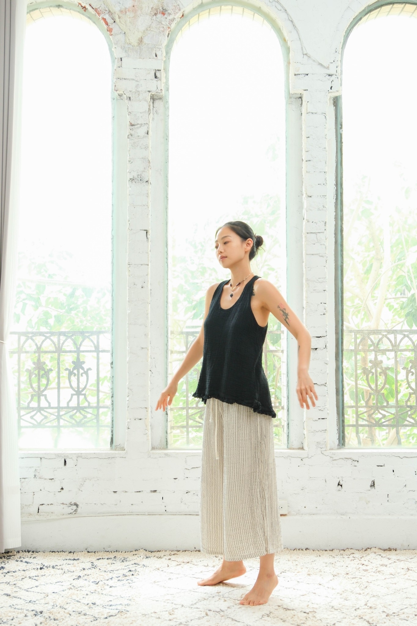 前短後長挖背背心,單穿或是多層次搭配都很適合。