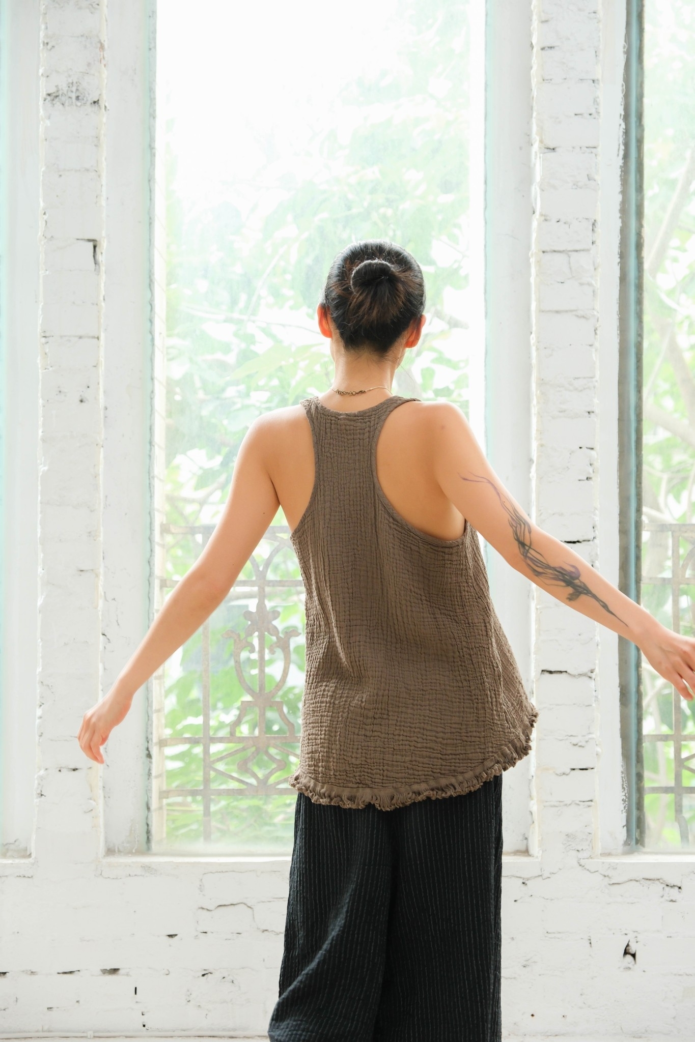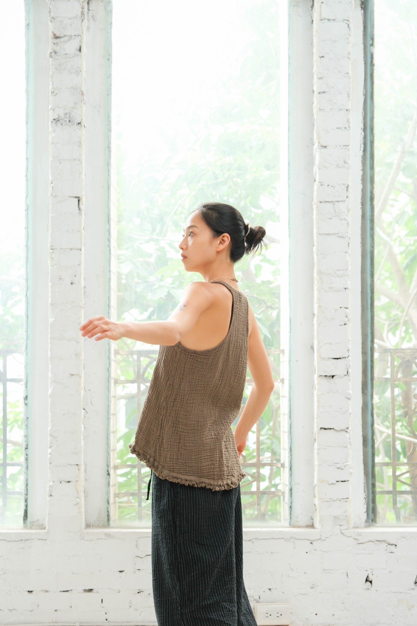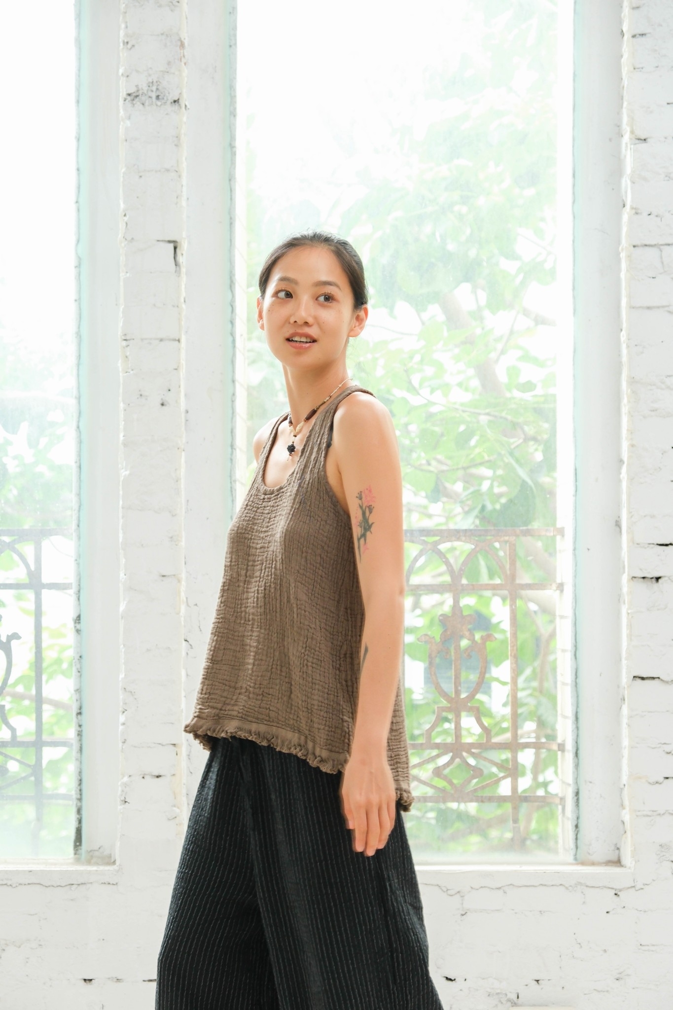 前短後長挖背背心,單穿或是多層次搭配都很適合。