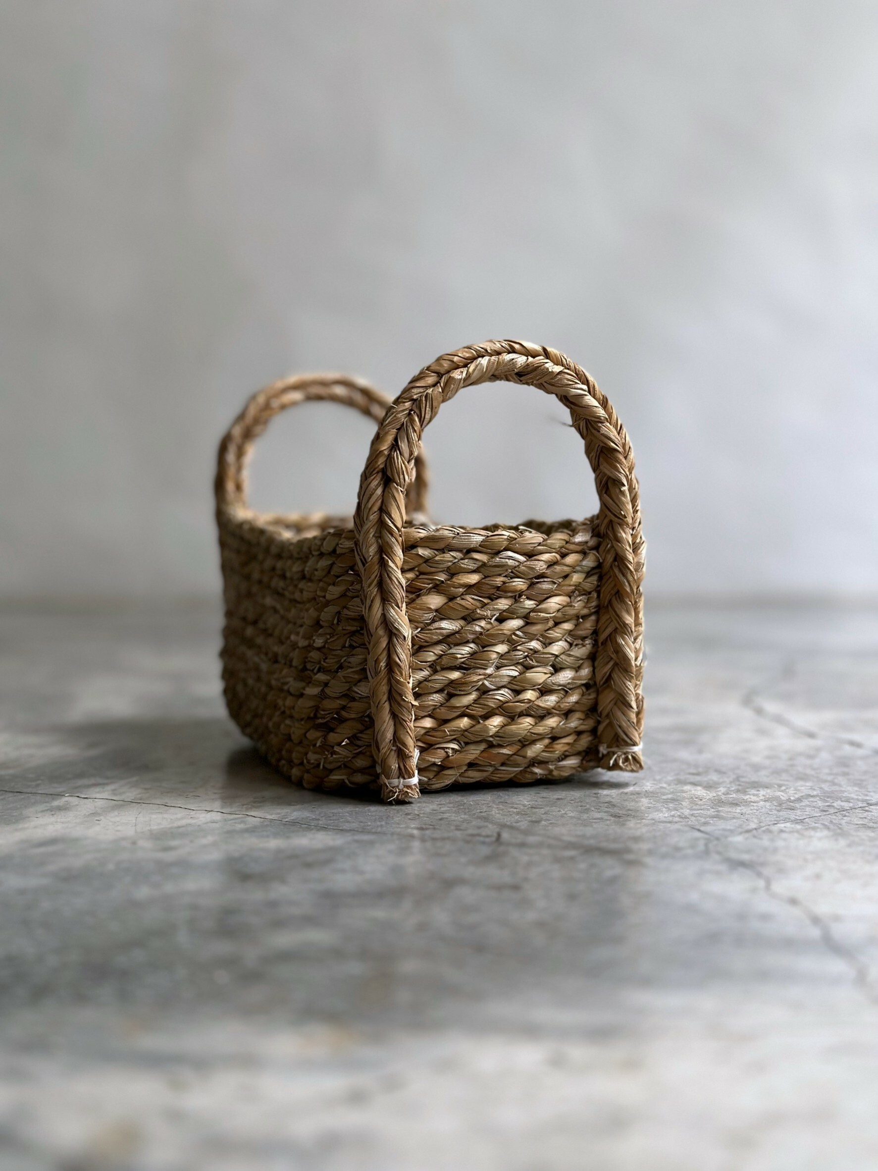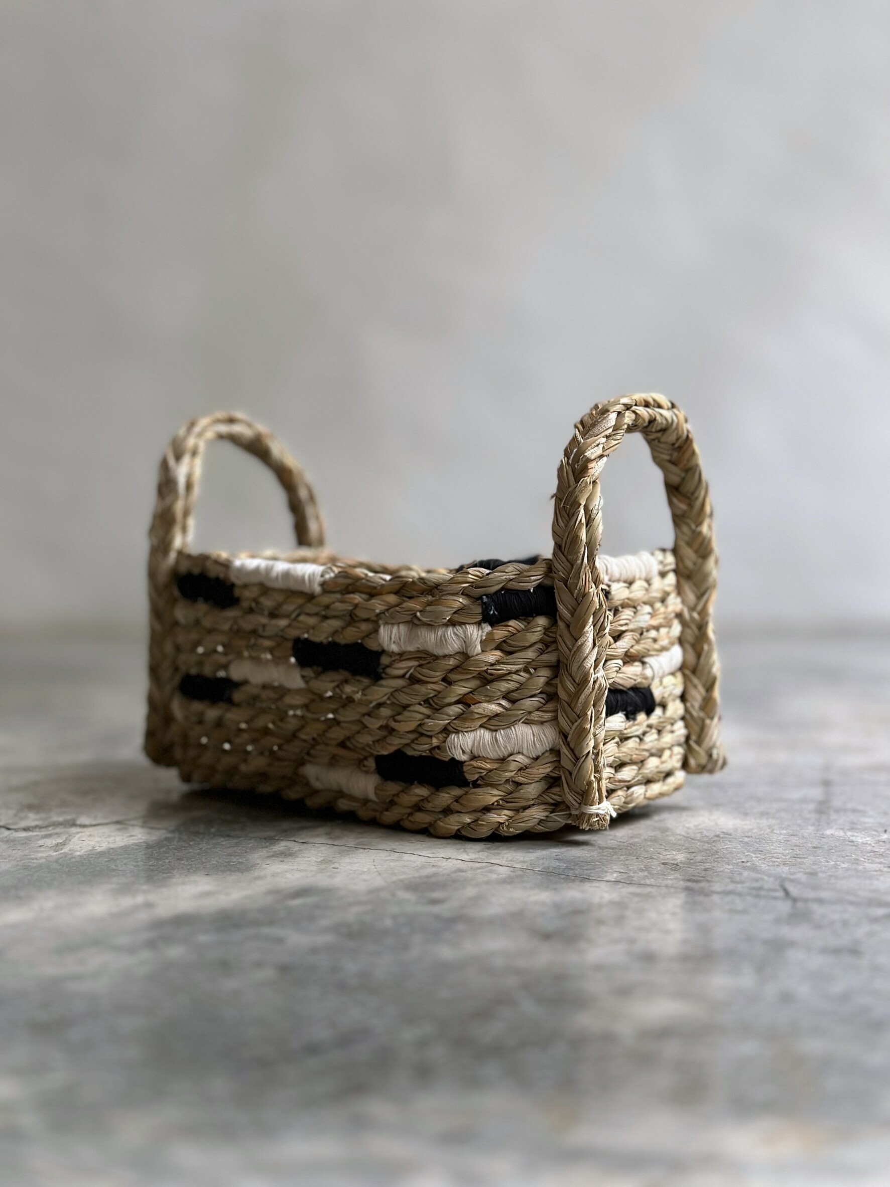 以纖維的捻製和堆疊後製作成樸質耐看且實用的提籃。