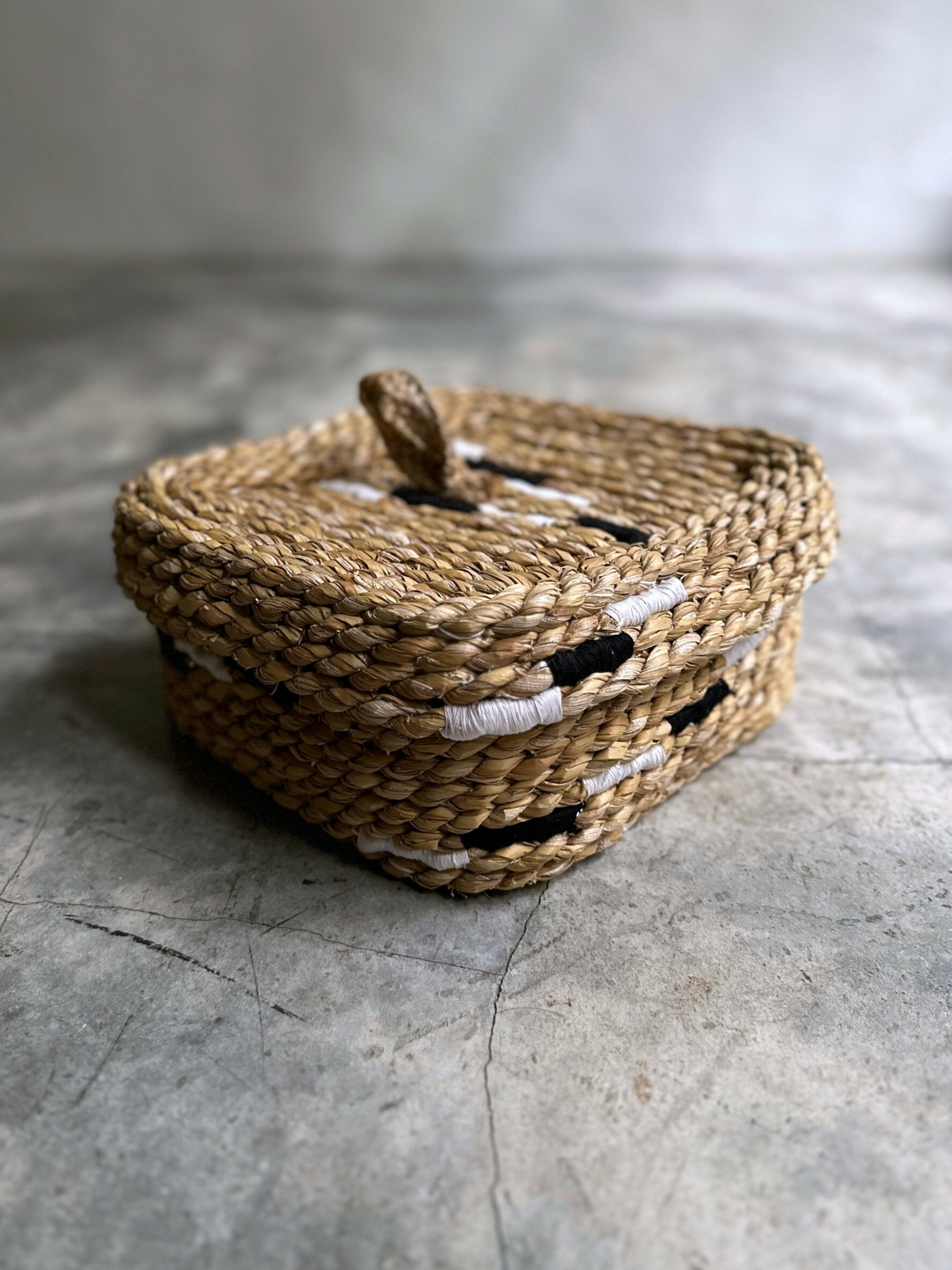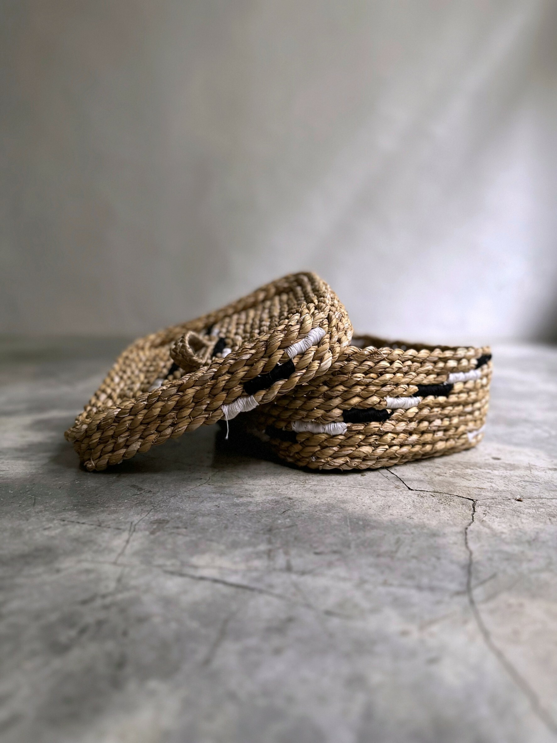 以纖維的捻製和堆疊後製作成樸質耐看且實用的提籃。