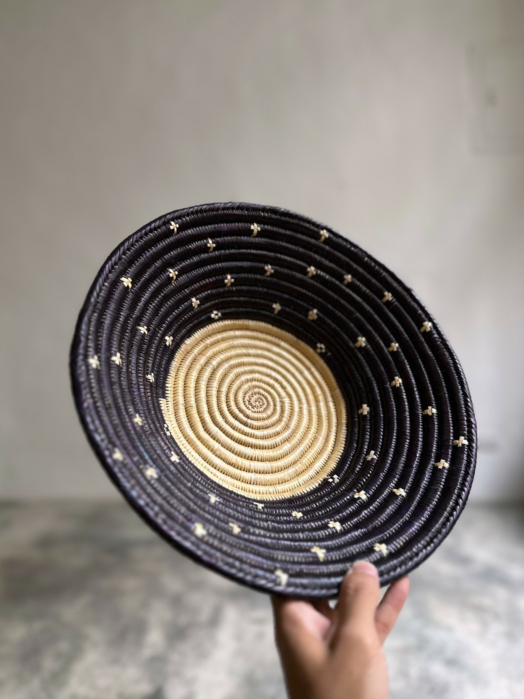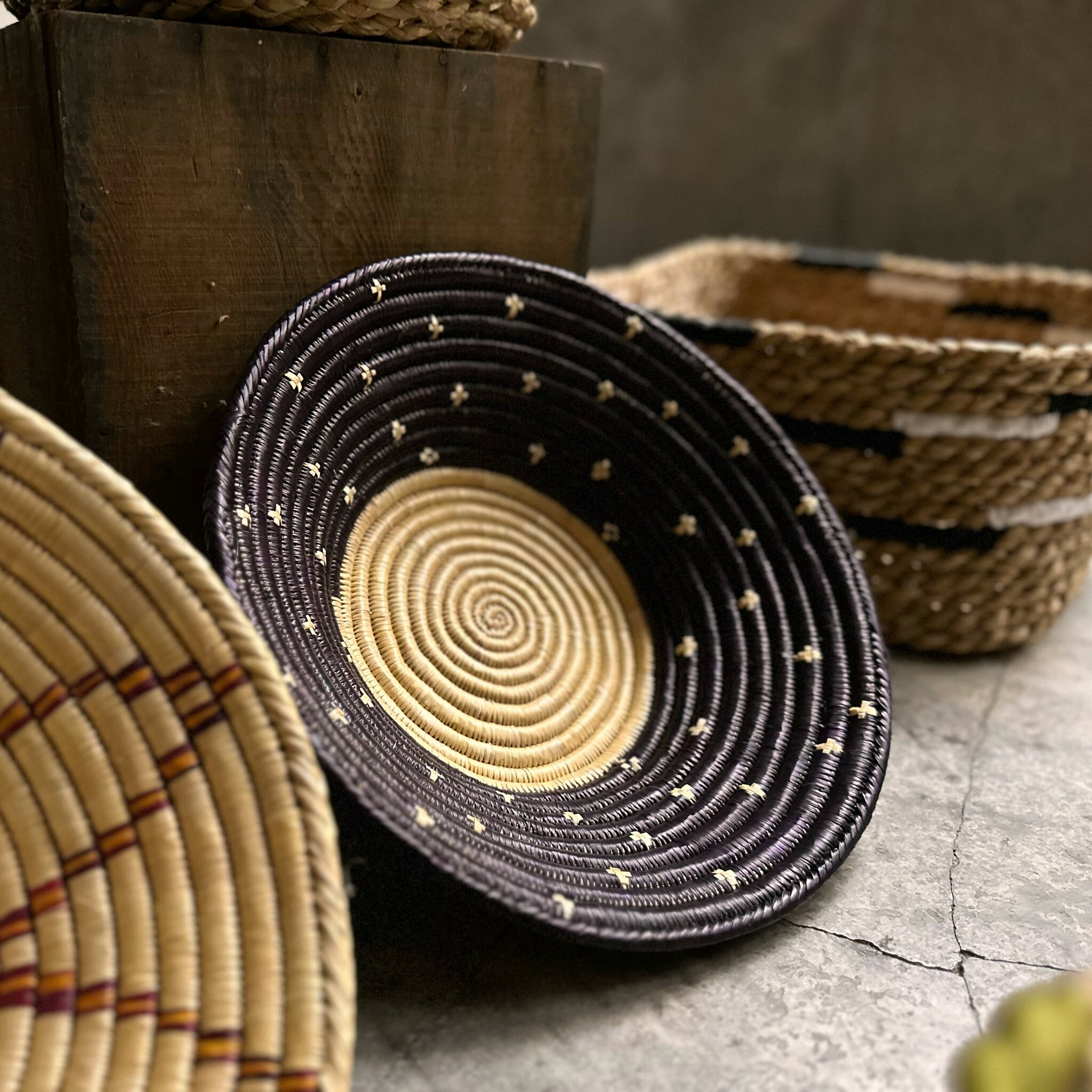 過去這樣的編籃常見於塔魯的儀式慶典中,嘗試過多種染料、工序和試錯,才得到了這個罕見又較難染上的藍紫色。
