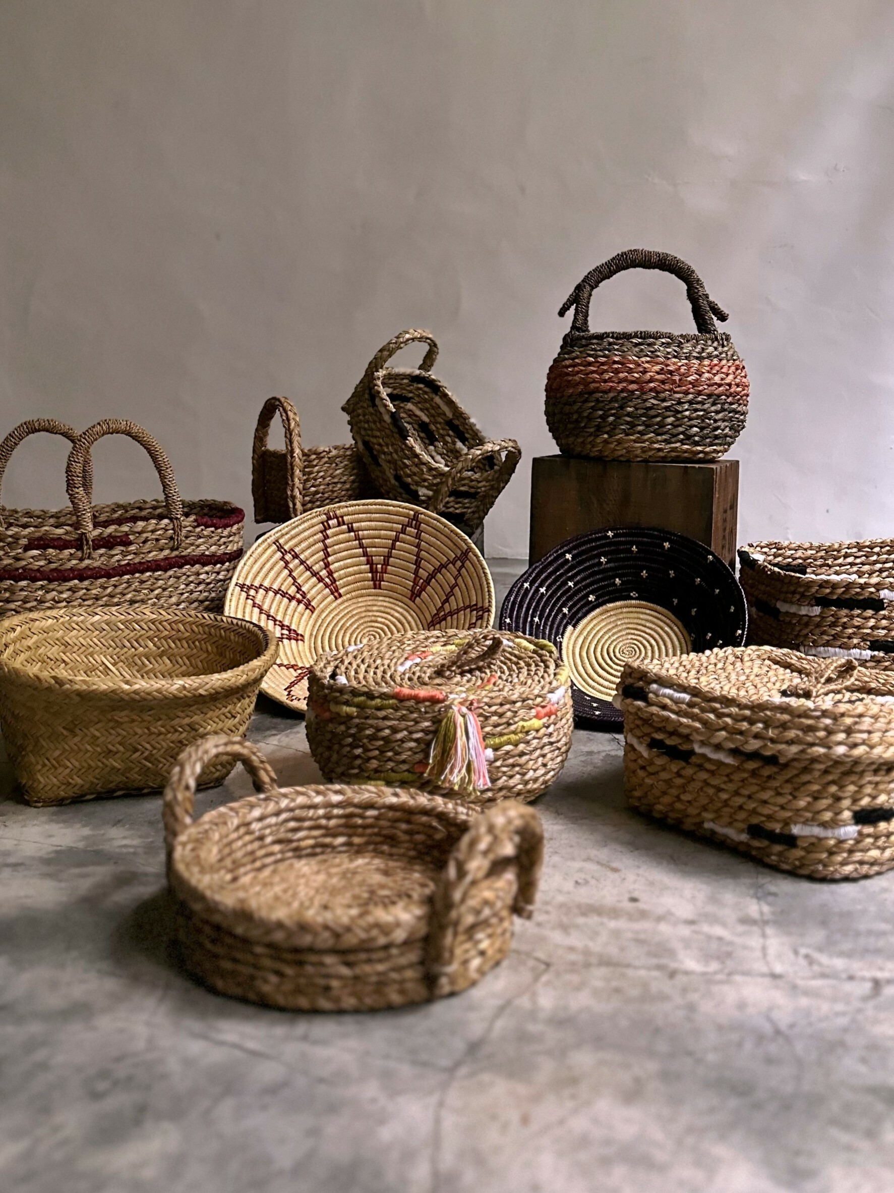 以纖維的捻製和堆疊後製作成樸質耐看且實用的提籃。