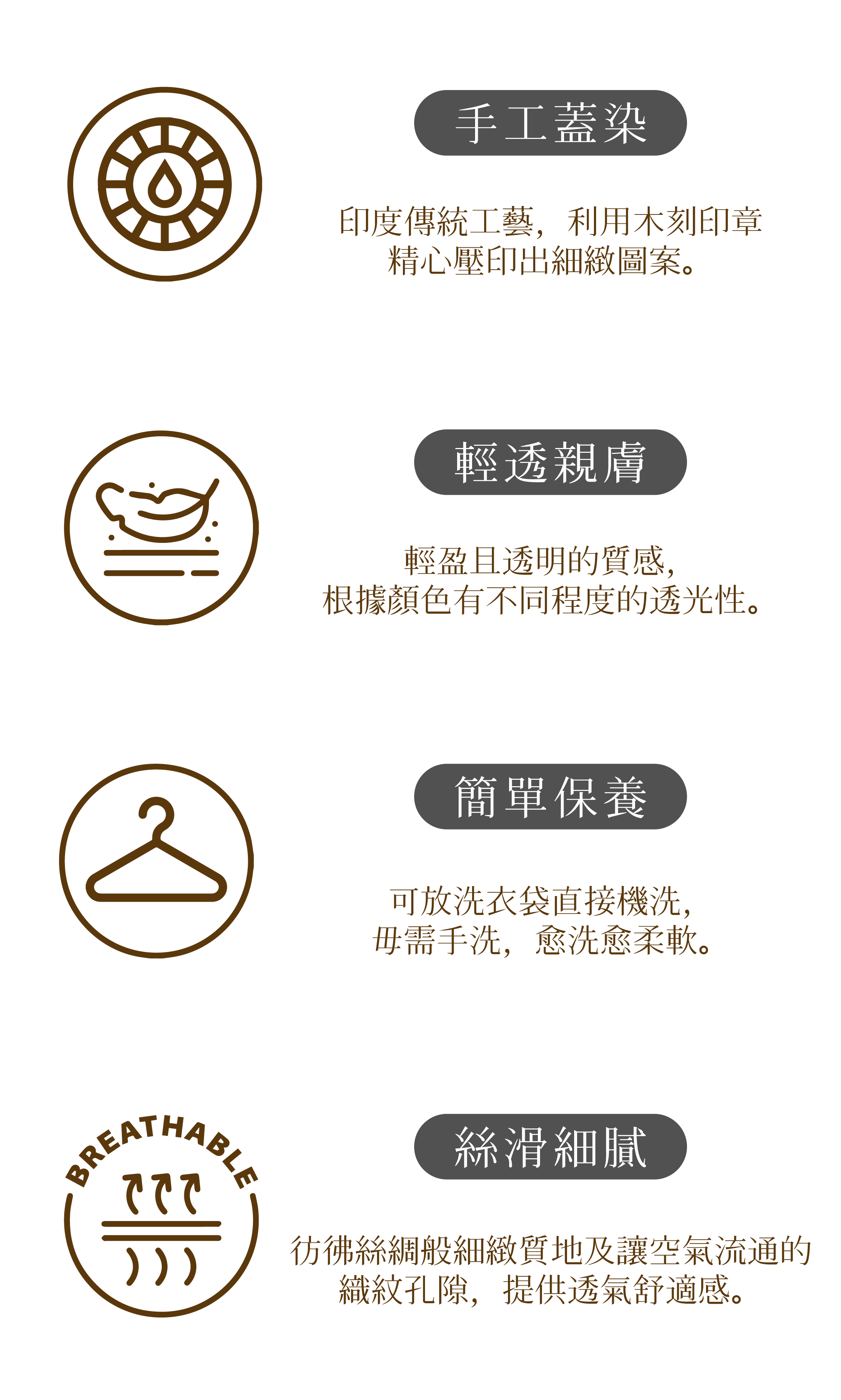 採用花樣繽紛的印度花布,輕柔飄逸的柔軟質感,四季皆可穿著的舒適洋裝。
