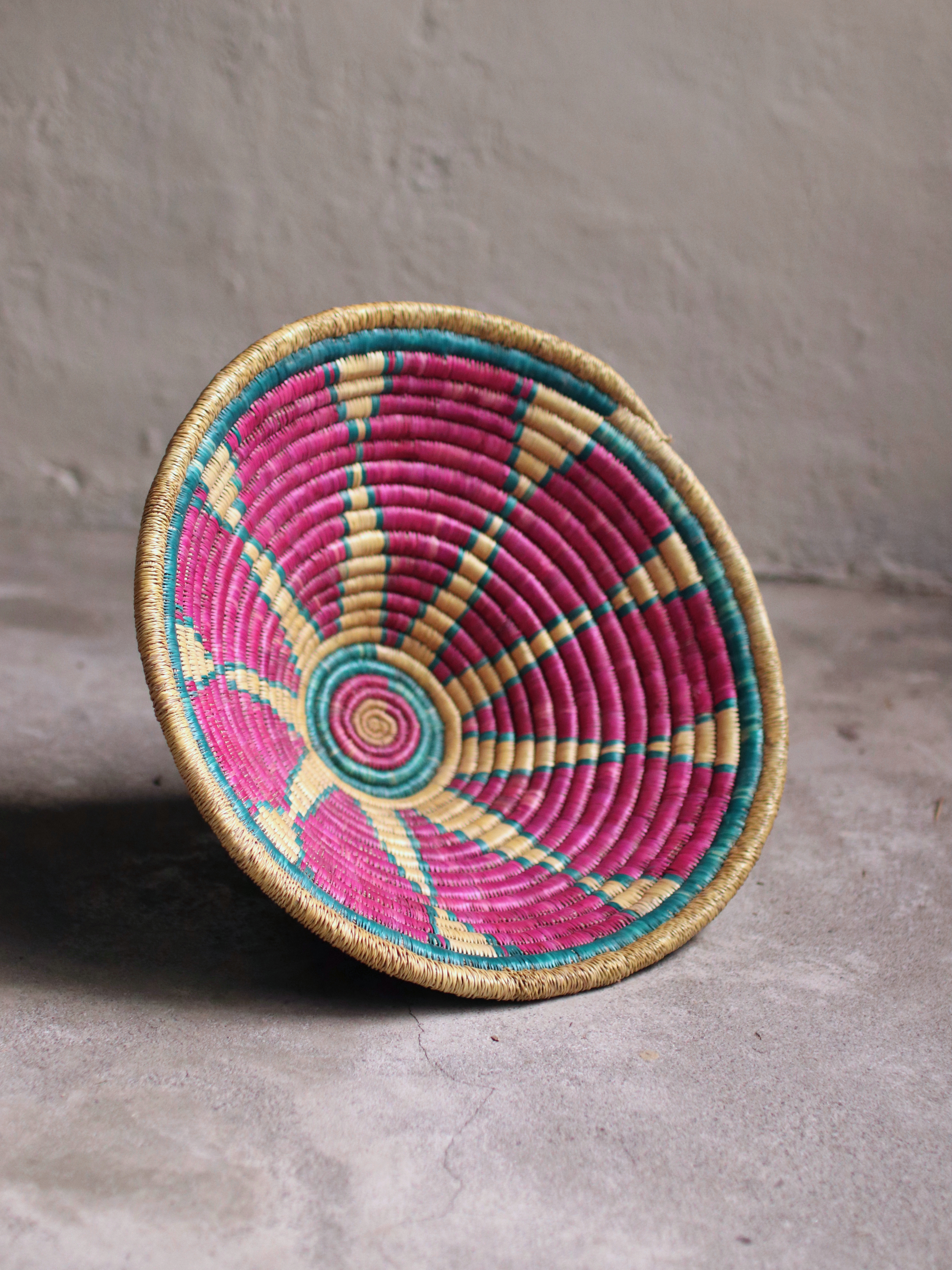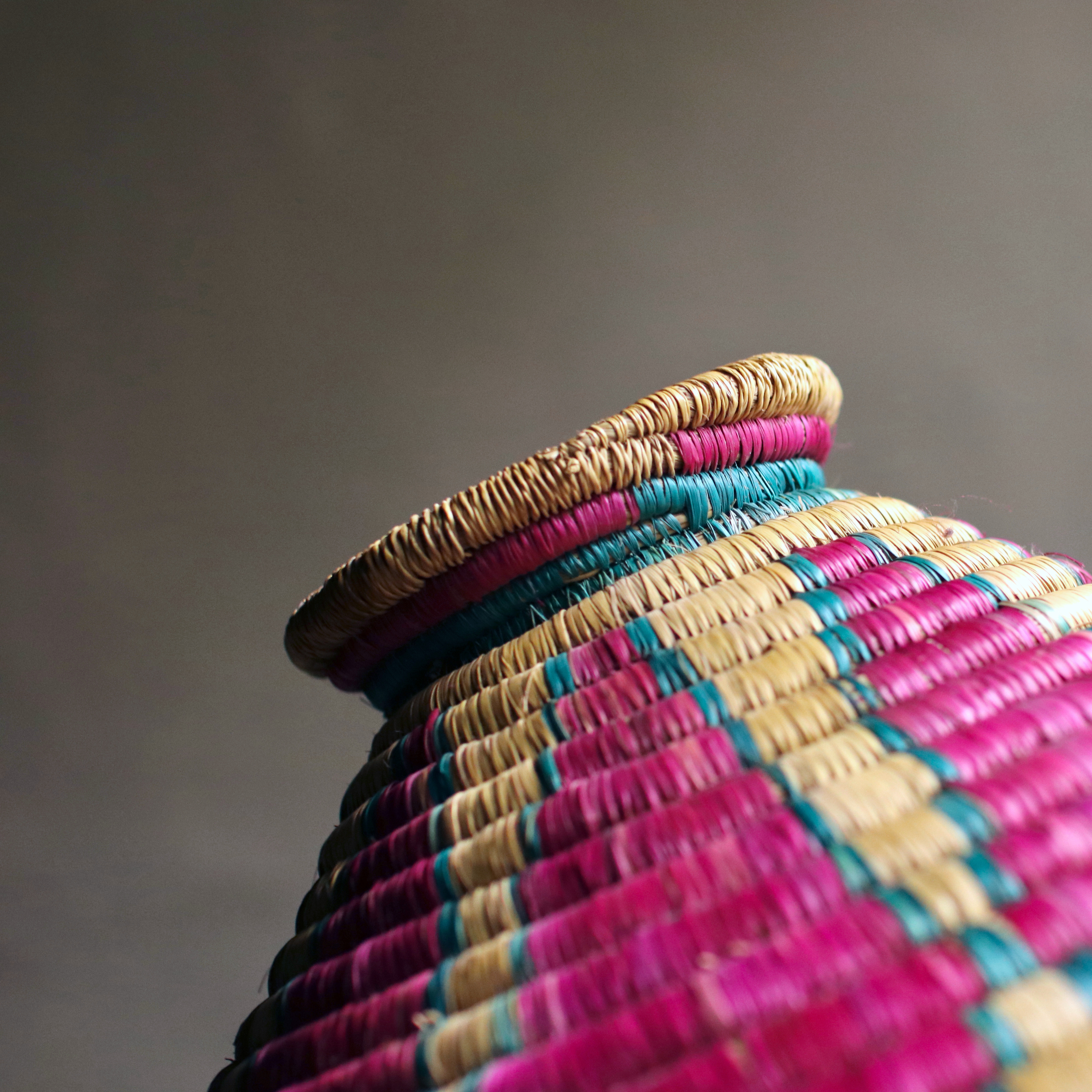 尼泊爾塔魯族婦女手製籃,色彩鮮豔活潑。