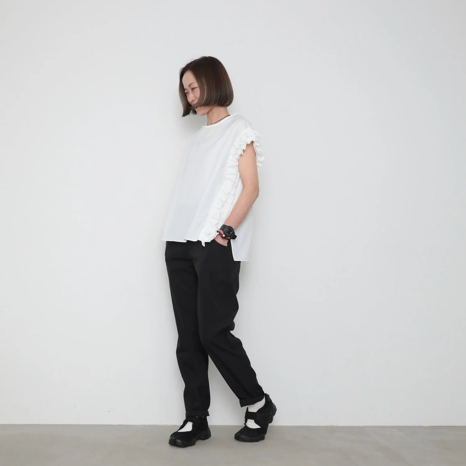 比我們迄今為止製作的桃子長褲的布料更薄,不易起皺,布料的厚度剛好,而且有一定的彈性,即使在炎熱的天氣也易於穿著。