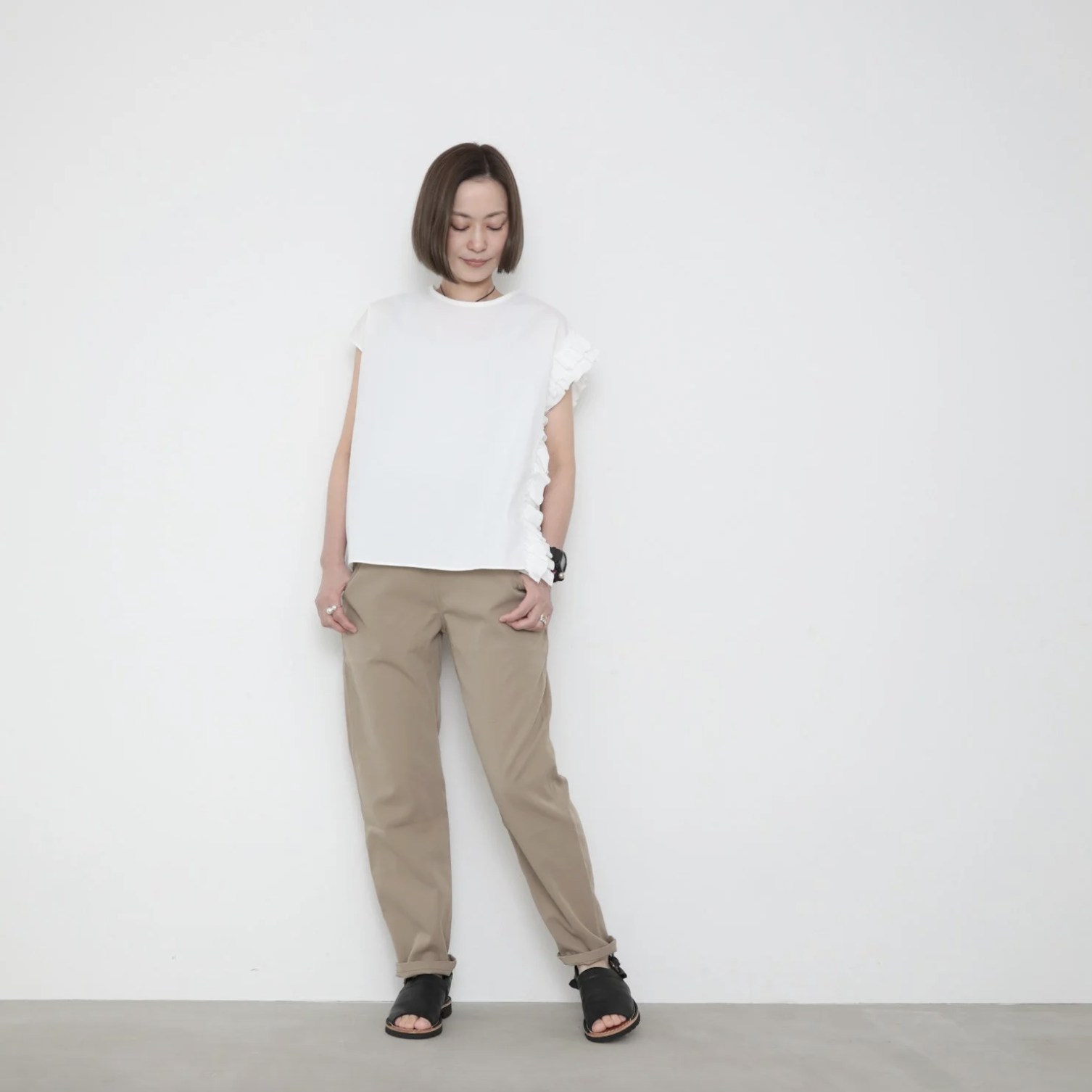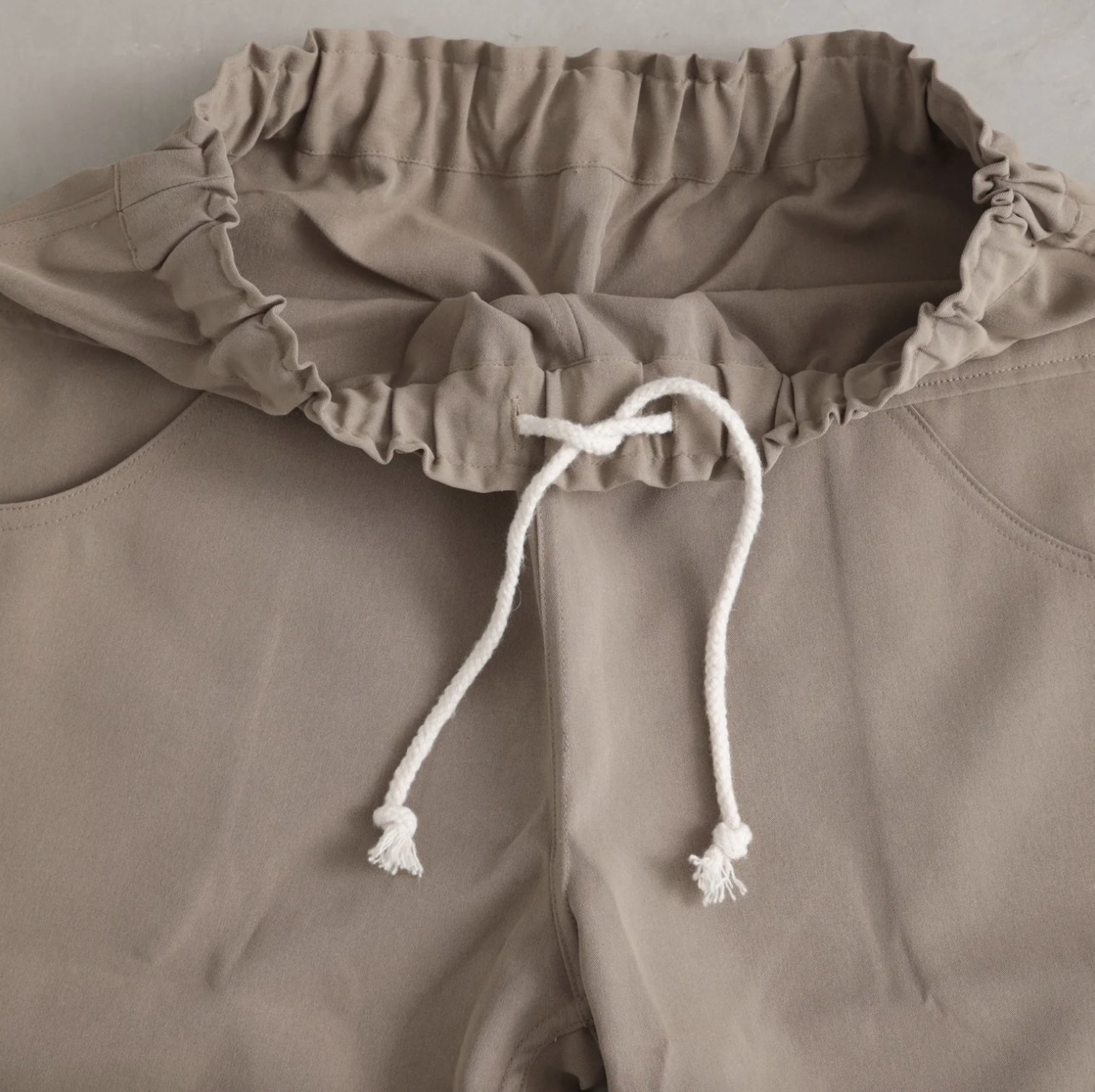比我們迄今為止製作的桃子長褲的布料更薄,不易起皺,布料的厚度剛好,而且有一定的彈性,即使在炎熱的天氣也易於穿著。
