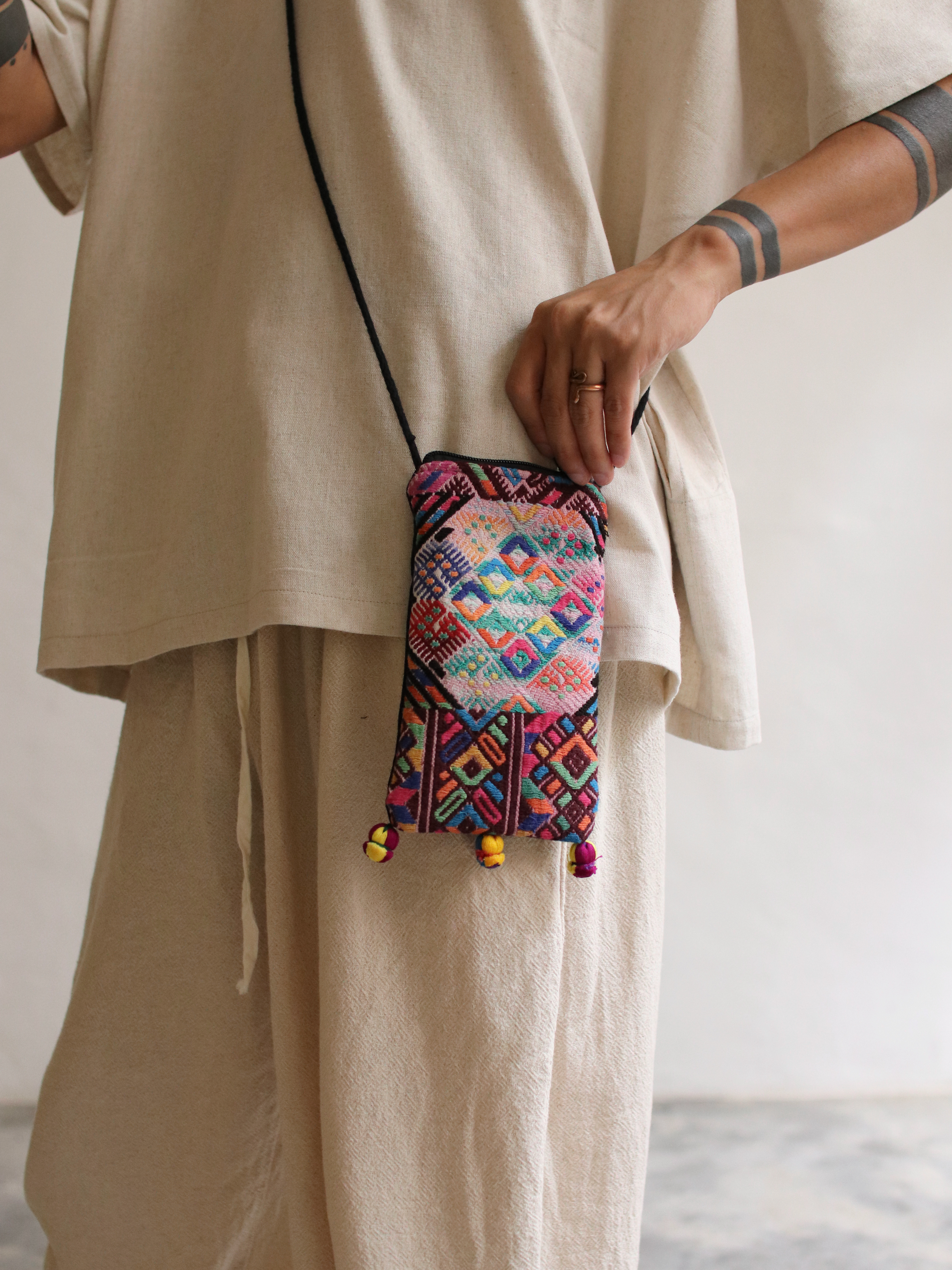 瑪雅刺繡斜背小袋源自瓜地馬拉的手工藝精髓。每個小包包都由當地工匠以傳統技法手工製作,融合了瑪雅文化的精髓和現代風格的融合。精緻的刺繡圖案展現了當地文化的豐富色彩和生動故事,為您的裝扮增添了獨特風采。採用高品質棉製成,輕巧舒適,讓您輕鬆攜帶日常必需品,無論是逛街還是旅行,都能展現您的品味和風格。