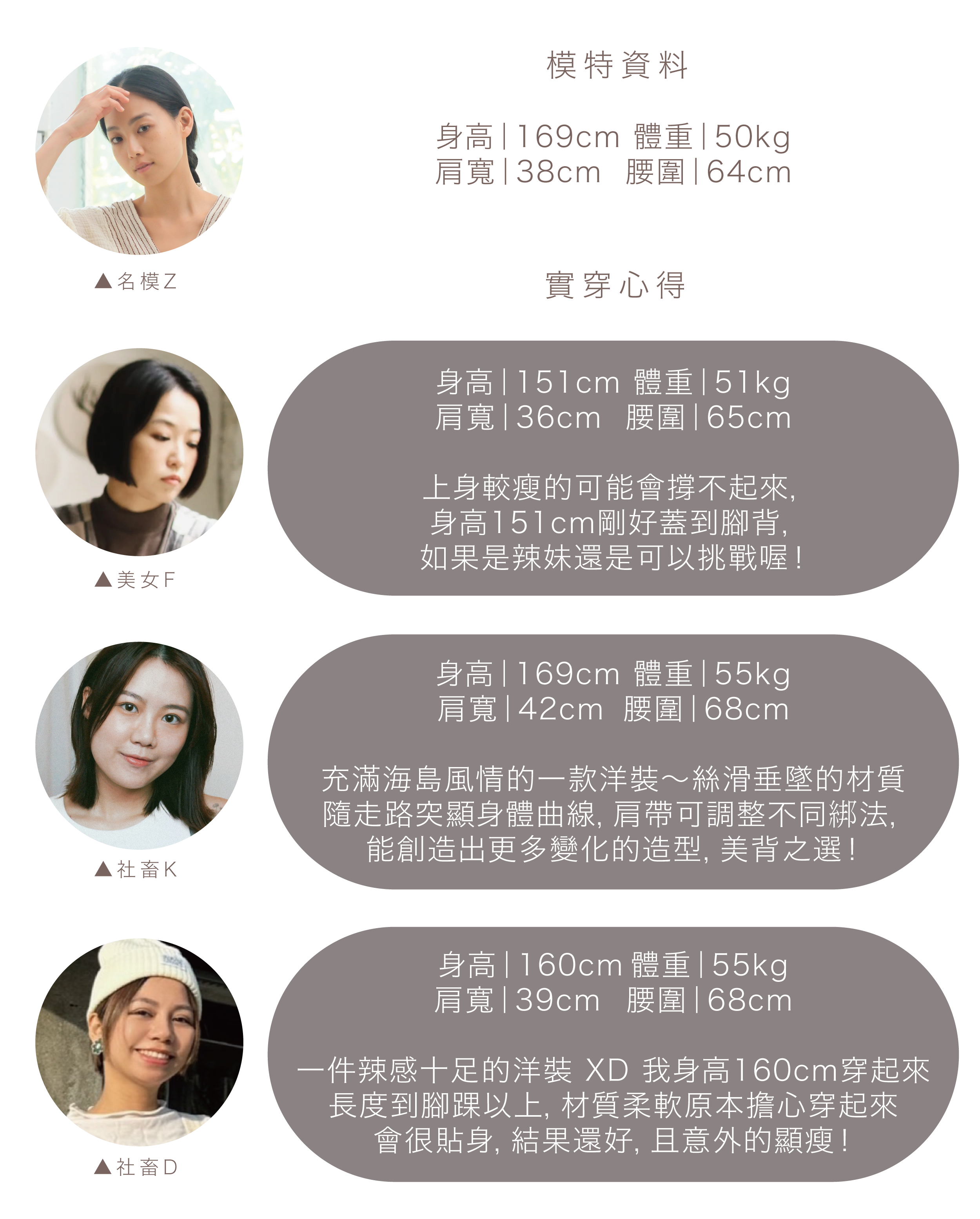 以抽繩調整肩帶長度及領口高度的細肩帶洋裝,清涼一整個夏天。