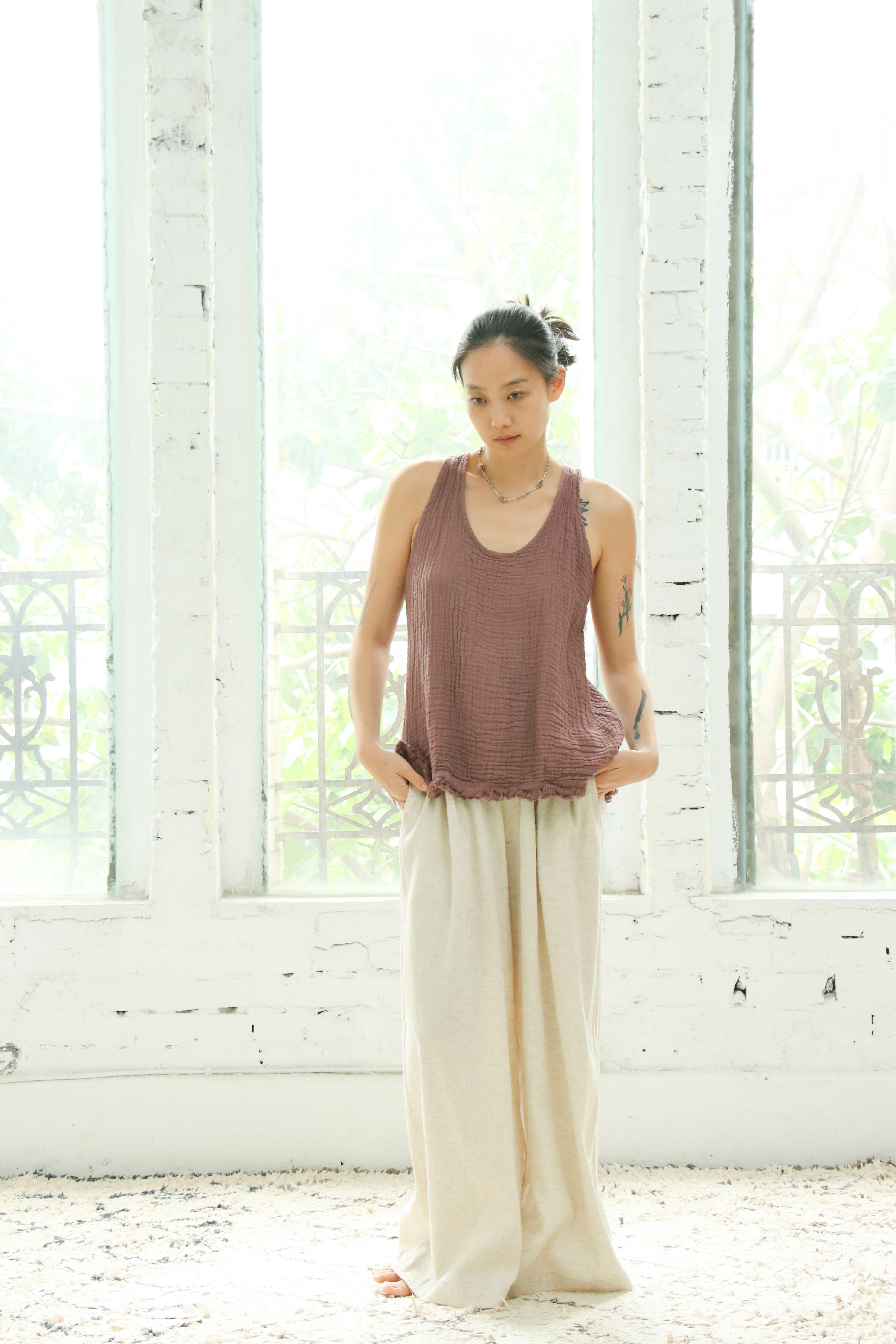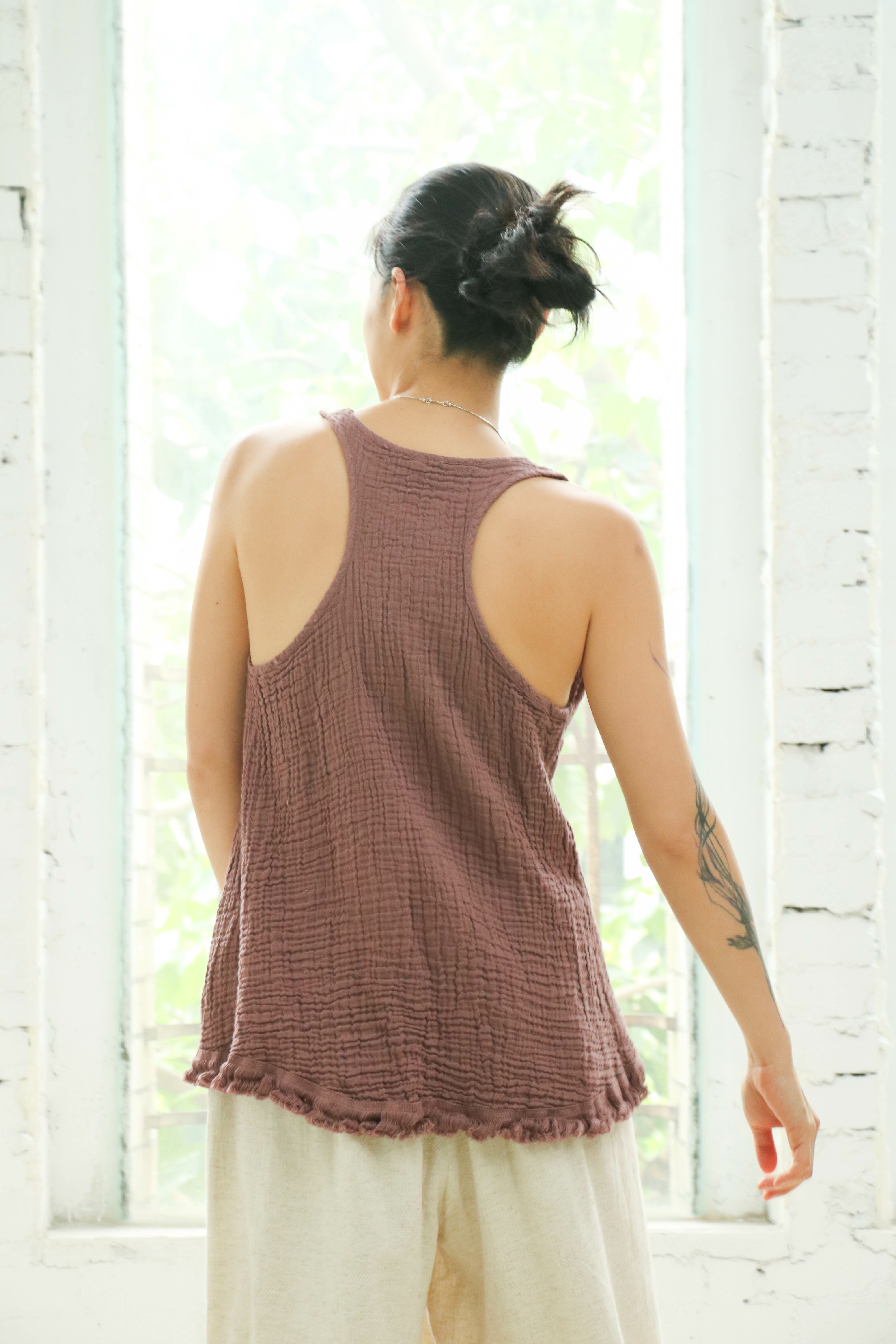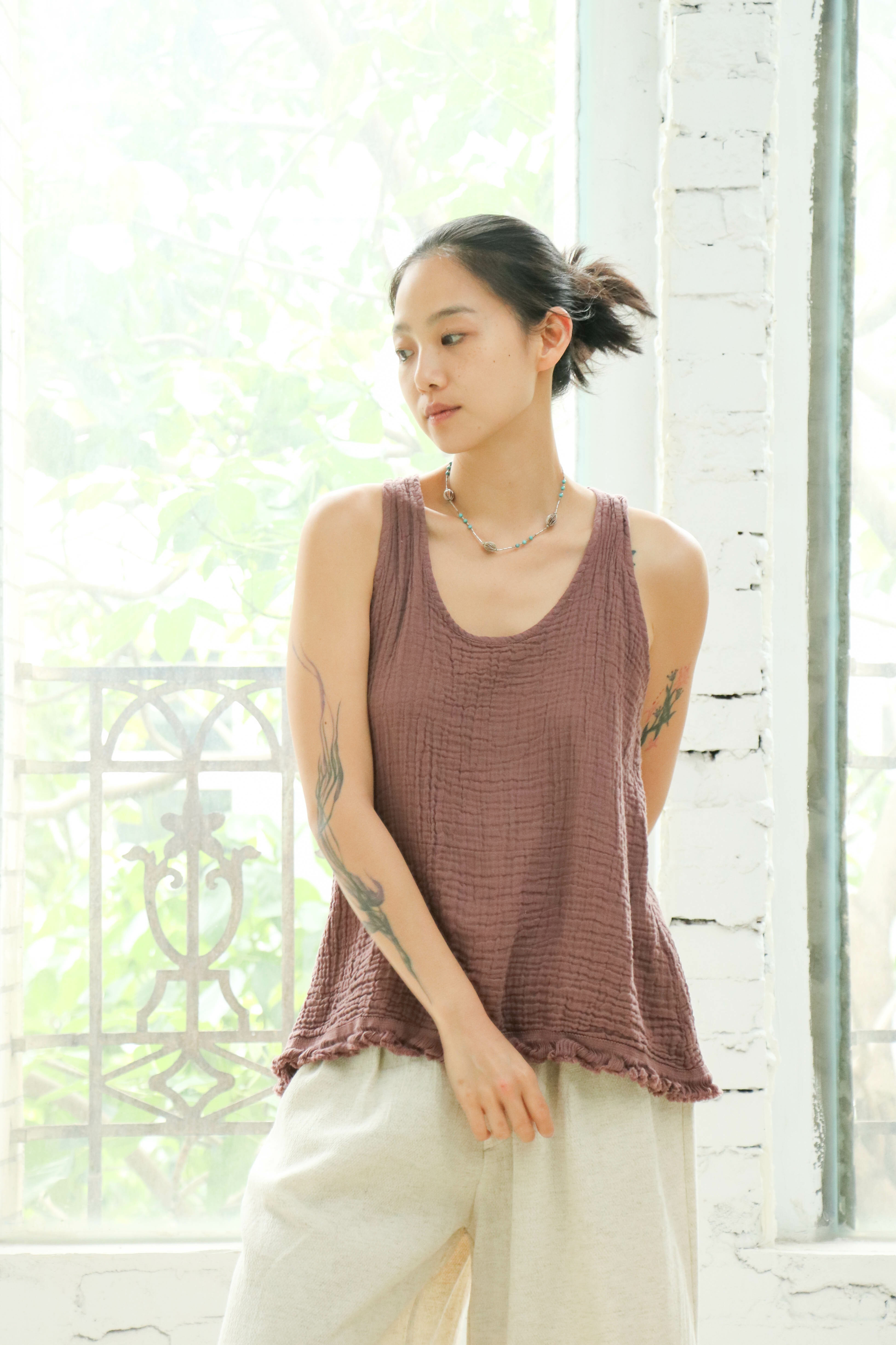 前短後長挖背背心,單穿或是多層次搭配都很適合。