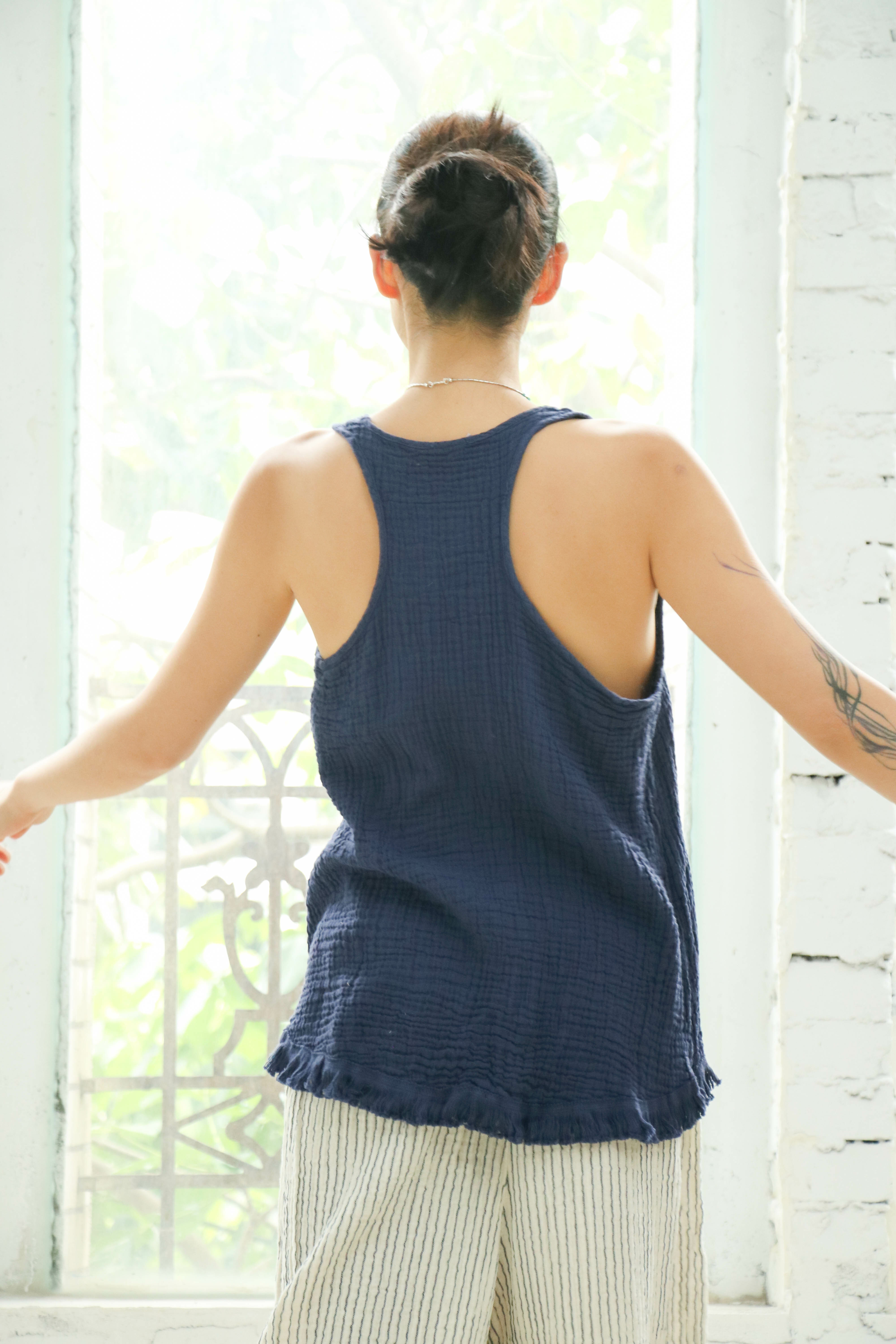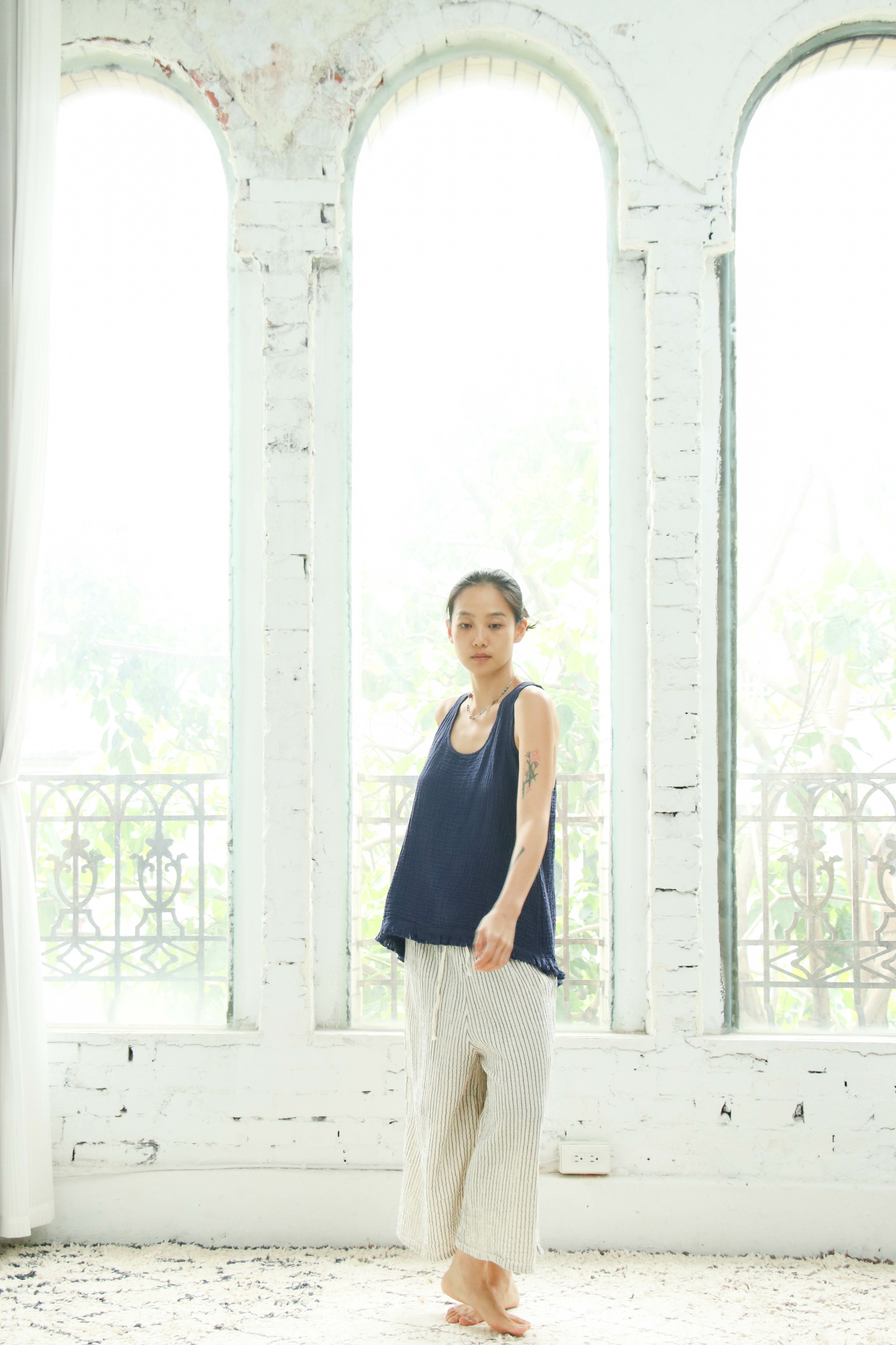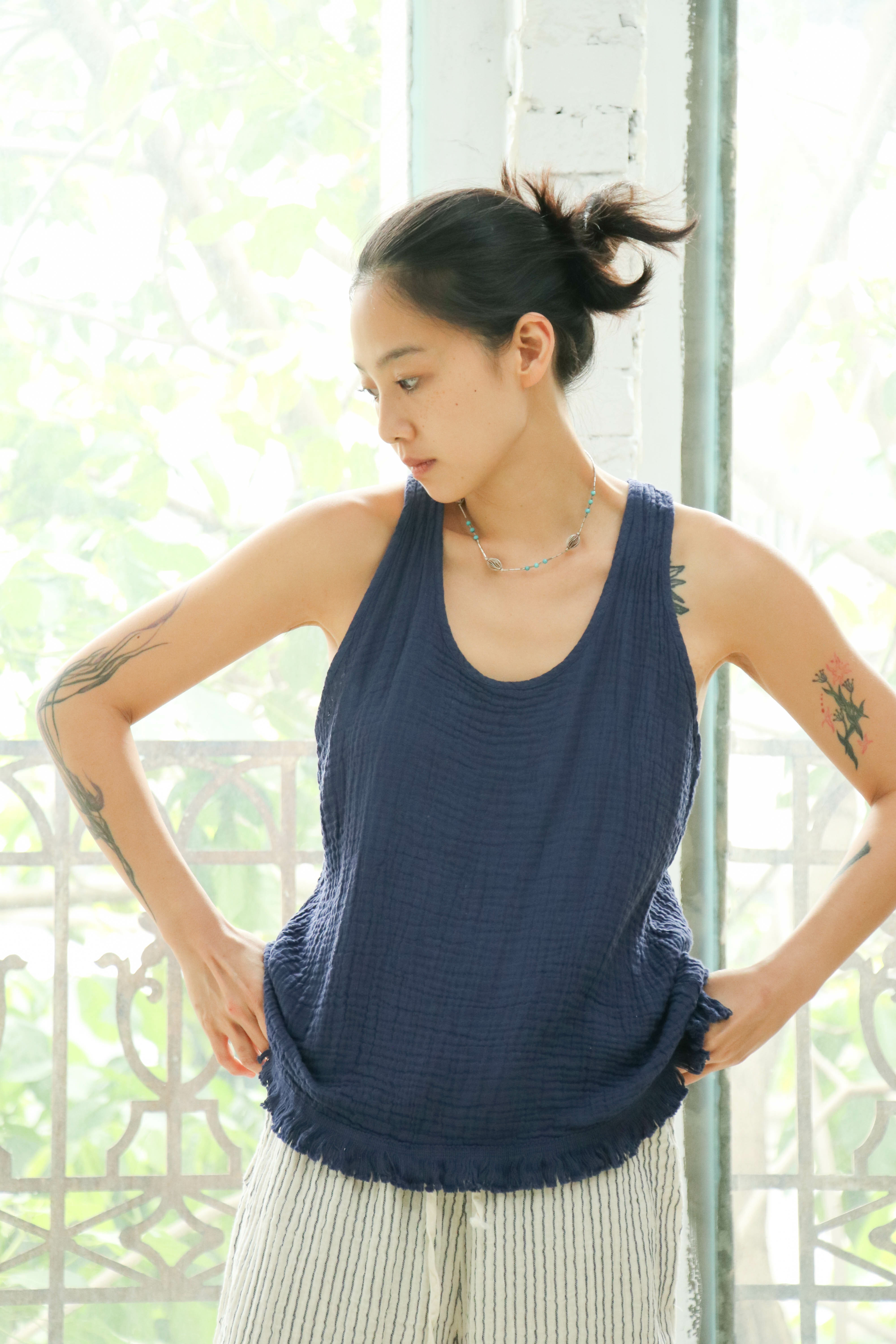 前短後長挖背背心,單穿或是多層次搭配都很適合。
