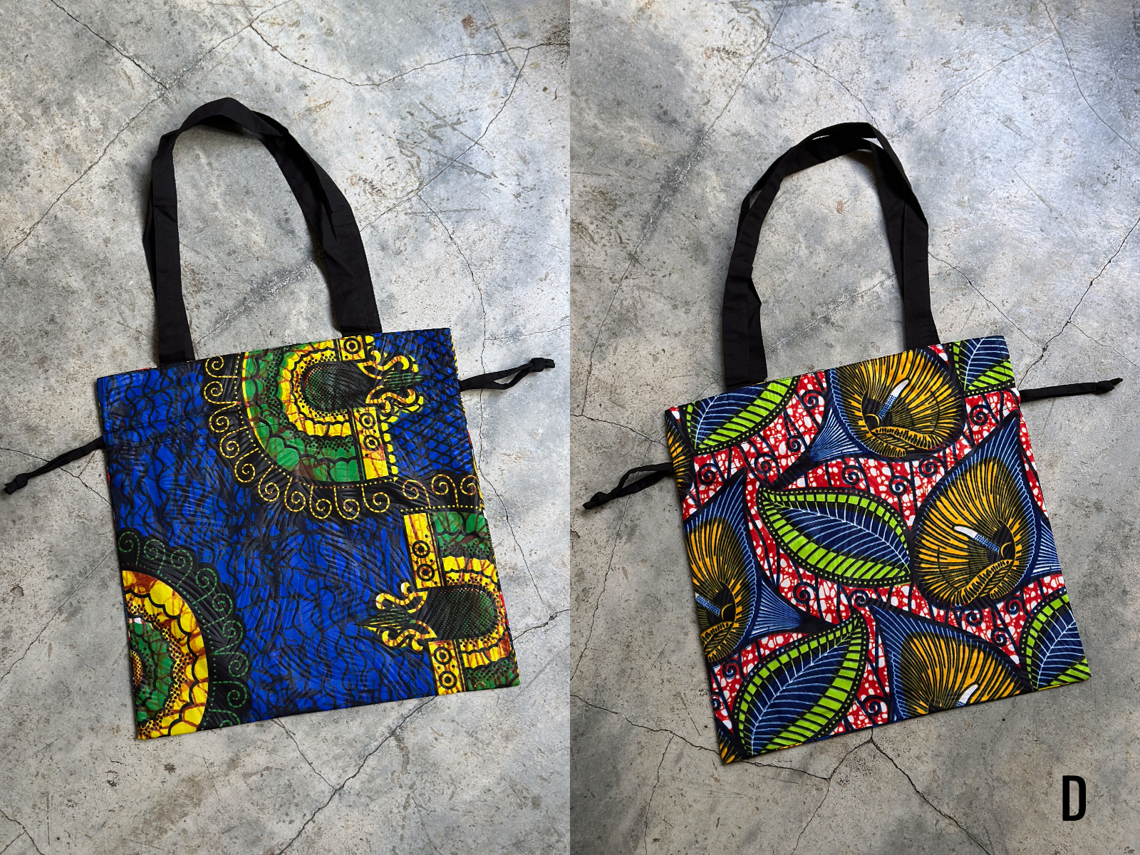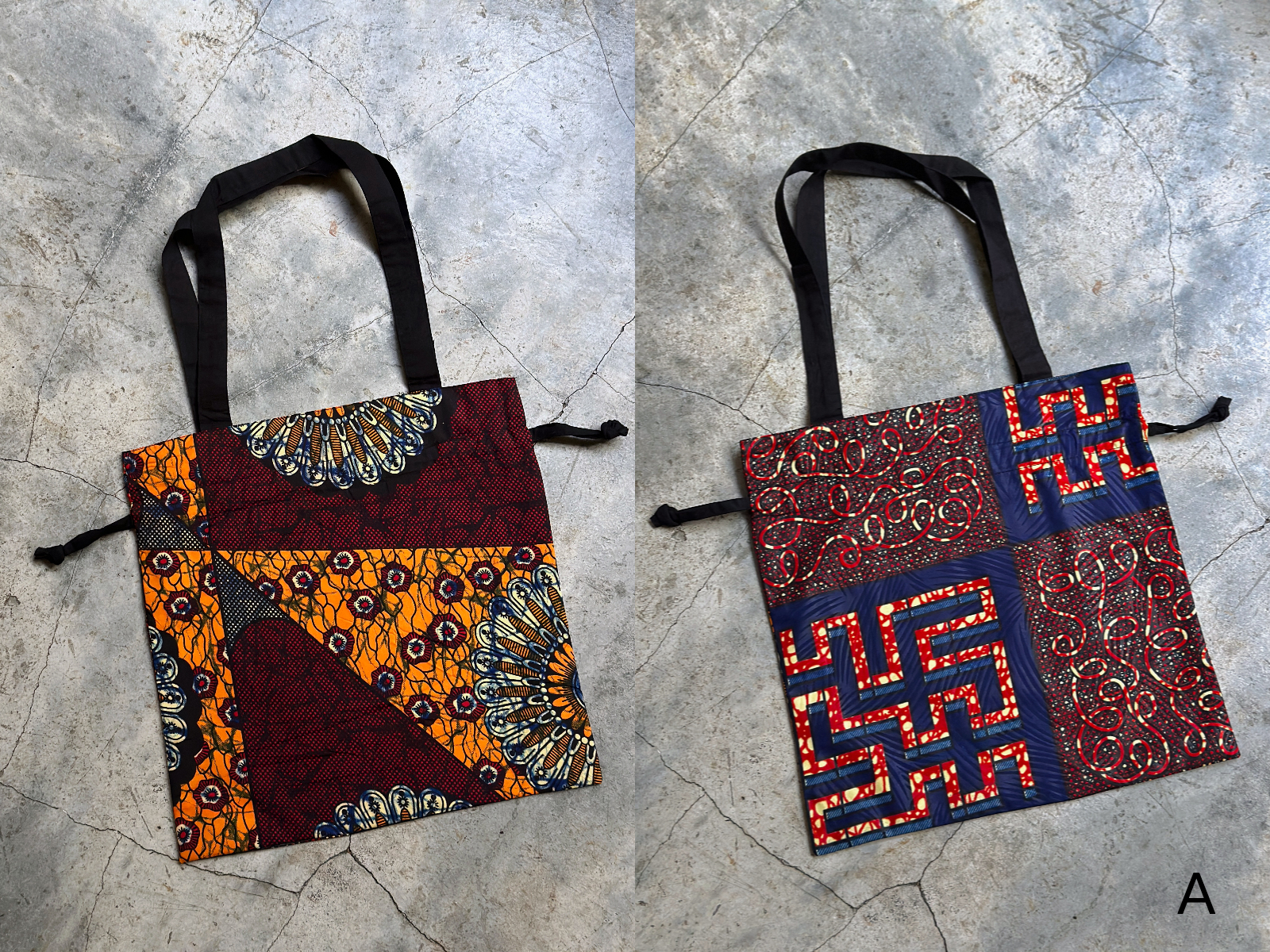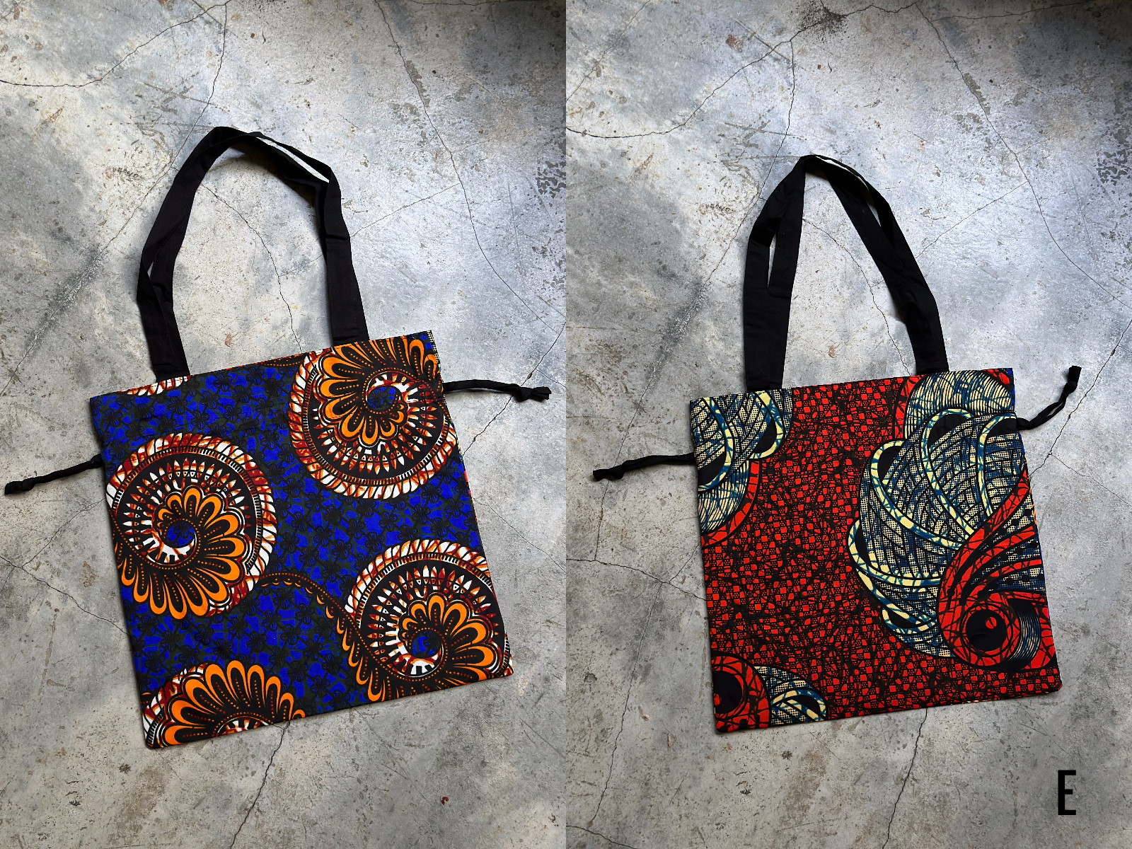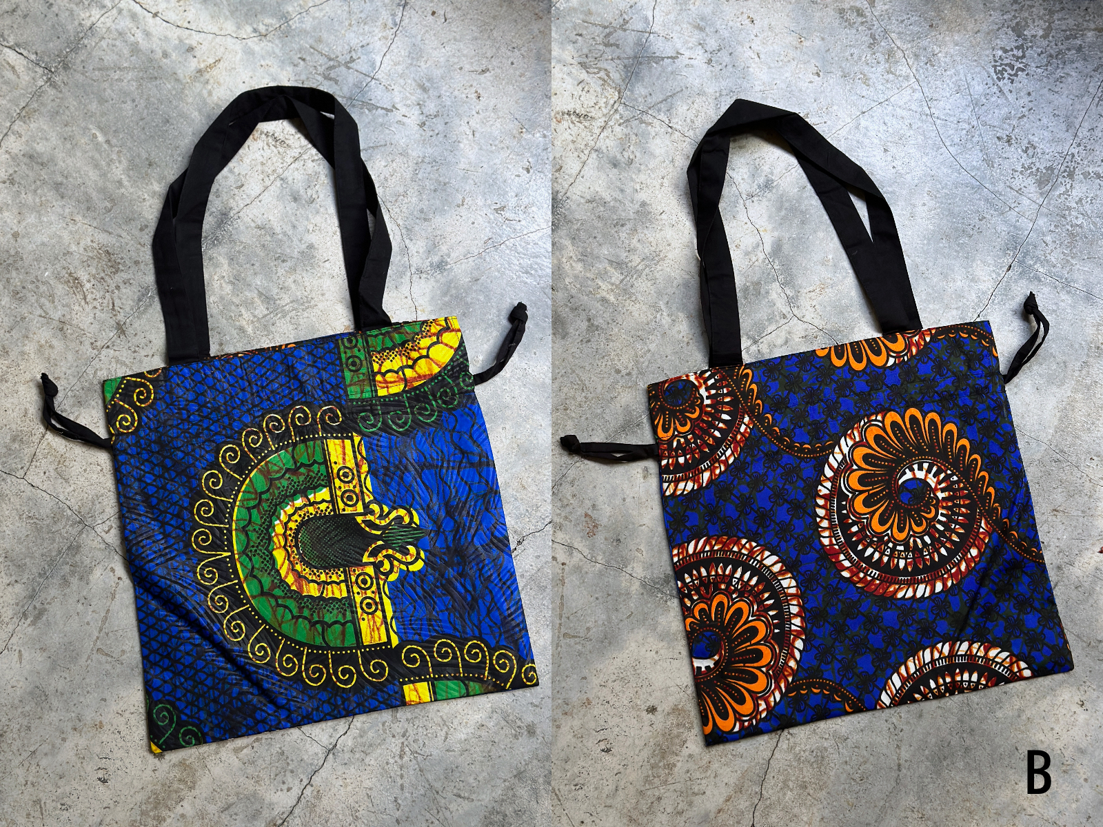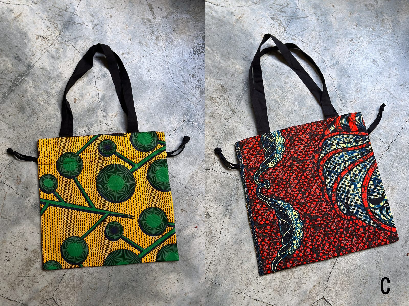 兩面不同風格的繽紛非洲花布雙面束口拖特包