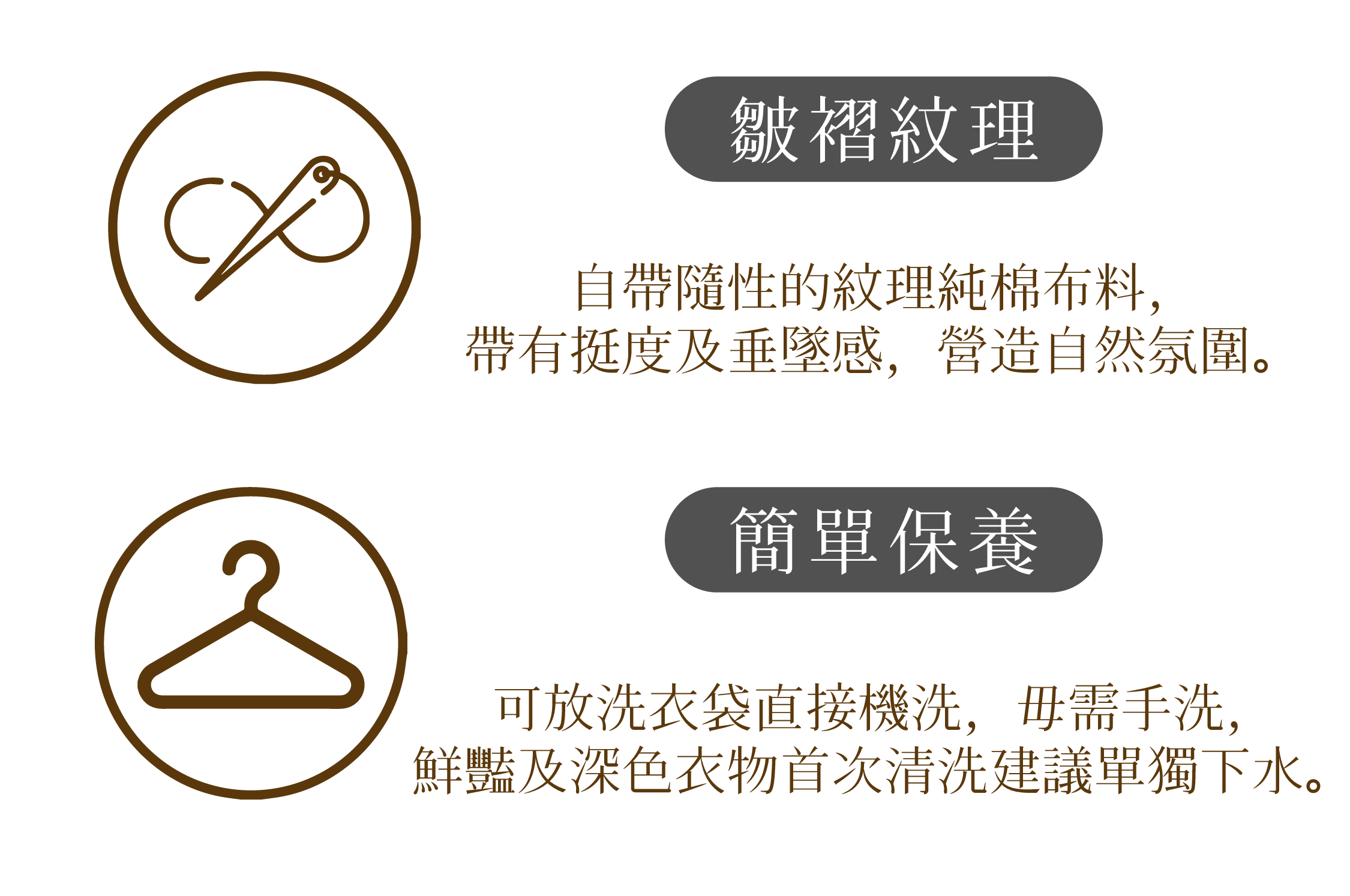 3、亞麻材質商品若機洗建議使用洗衣袋,脫水不要過乾,可減少發皺程度。