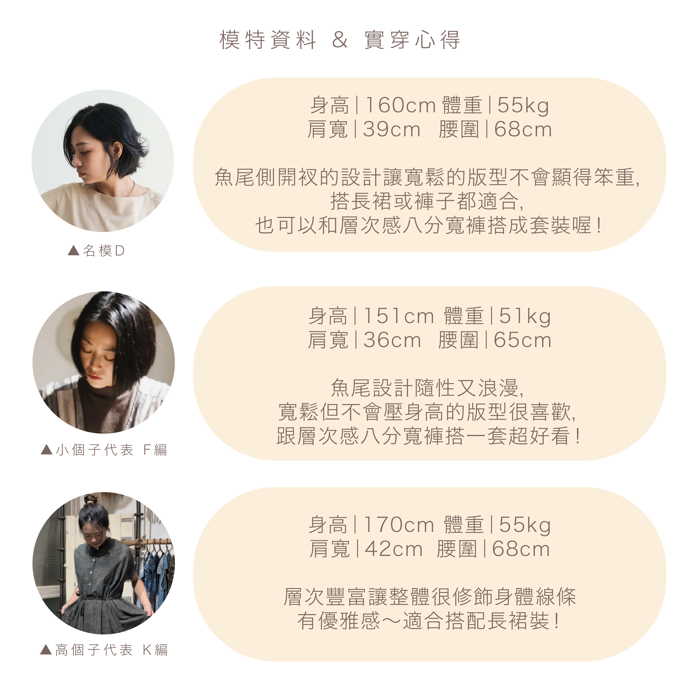 擁有優雅隨性魚尾設計的寬版設計落肩長版上衣